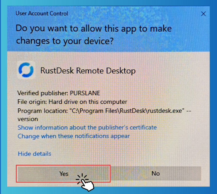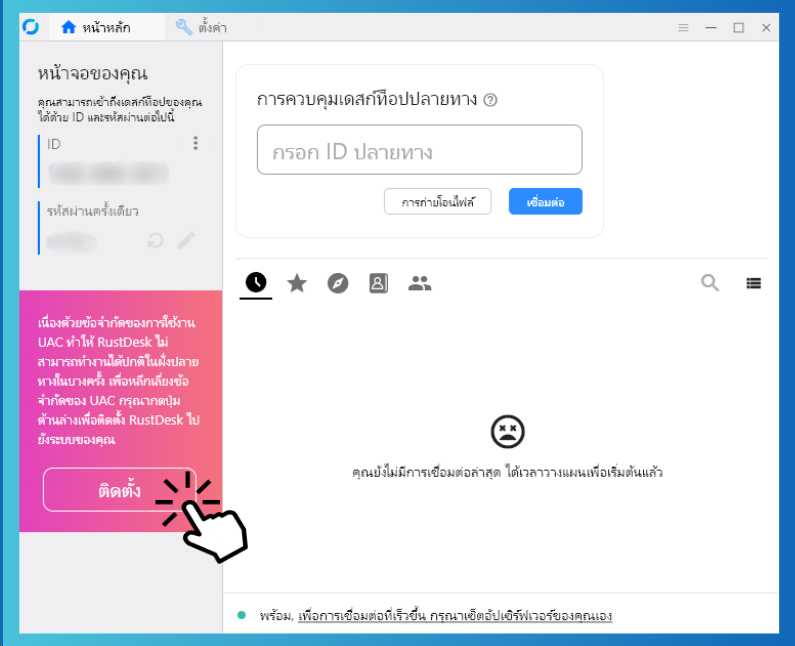 ให้ผู้ใช้งานดาวน์โหลดและติดตั้งโปรแกรม Rustdesk เป็นโปรแกรมที่ทางทีมงานจะใช้เพื่อแก้ปัญหาให้ผู้ใช้งาน