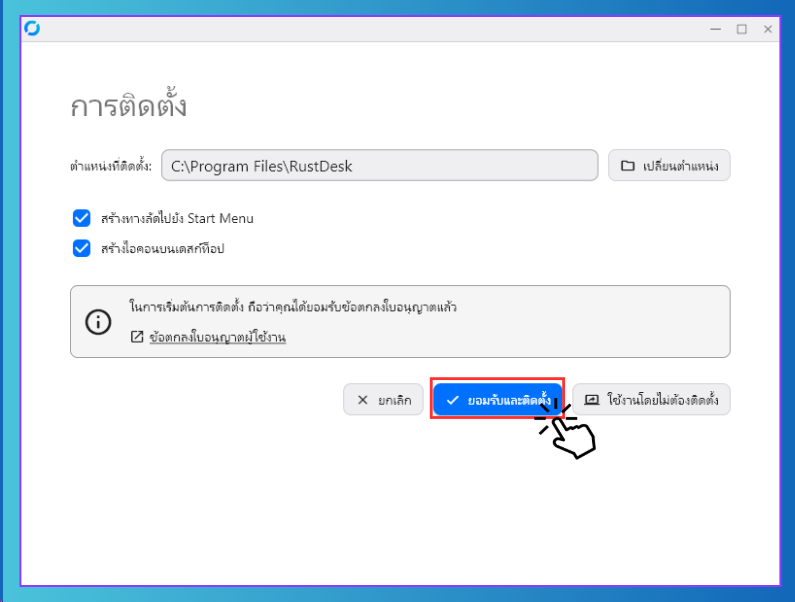 ทำการติดตั้งโปรแกรม โดยกดปุ่ม ติดตั้ง / Install