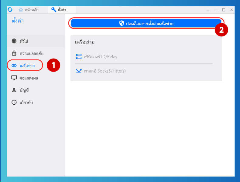 - คลิกที่ ปลดล็อคการตั้งค่าเครือข่าย / Unlock network settings