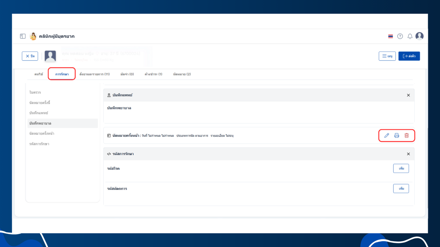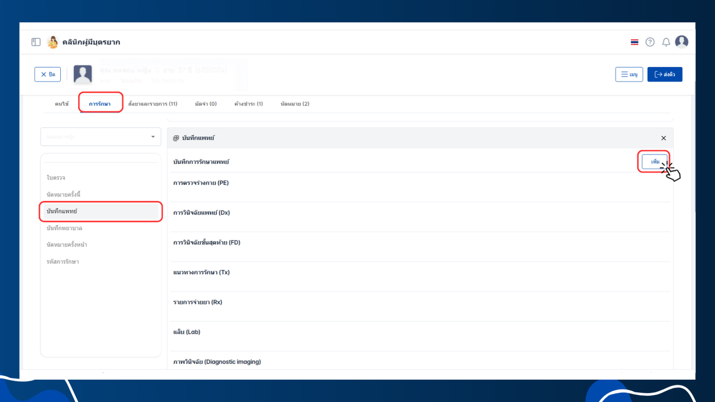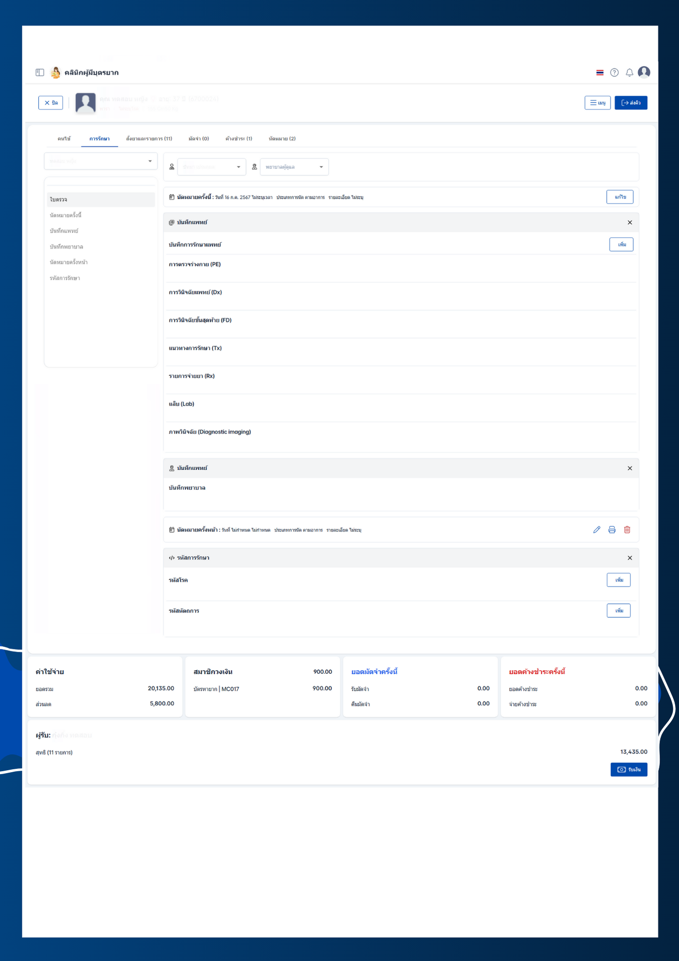 - เป็นส่วนที่แพทย์สามารถบันทึกรายละเอียดการรักษาของคนไข้แต่ละรายได้