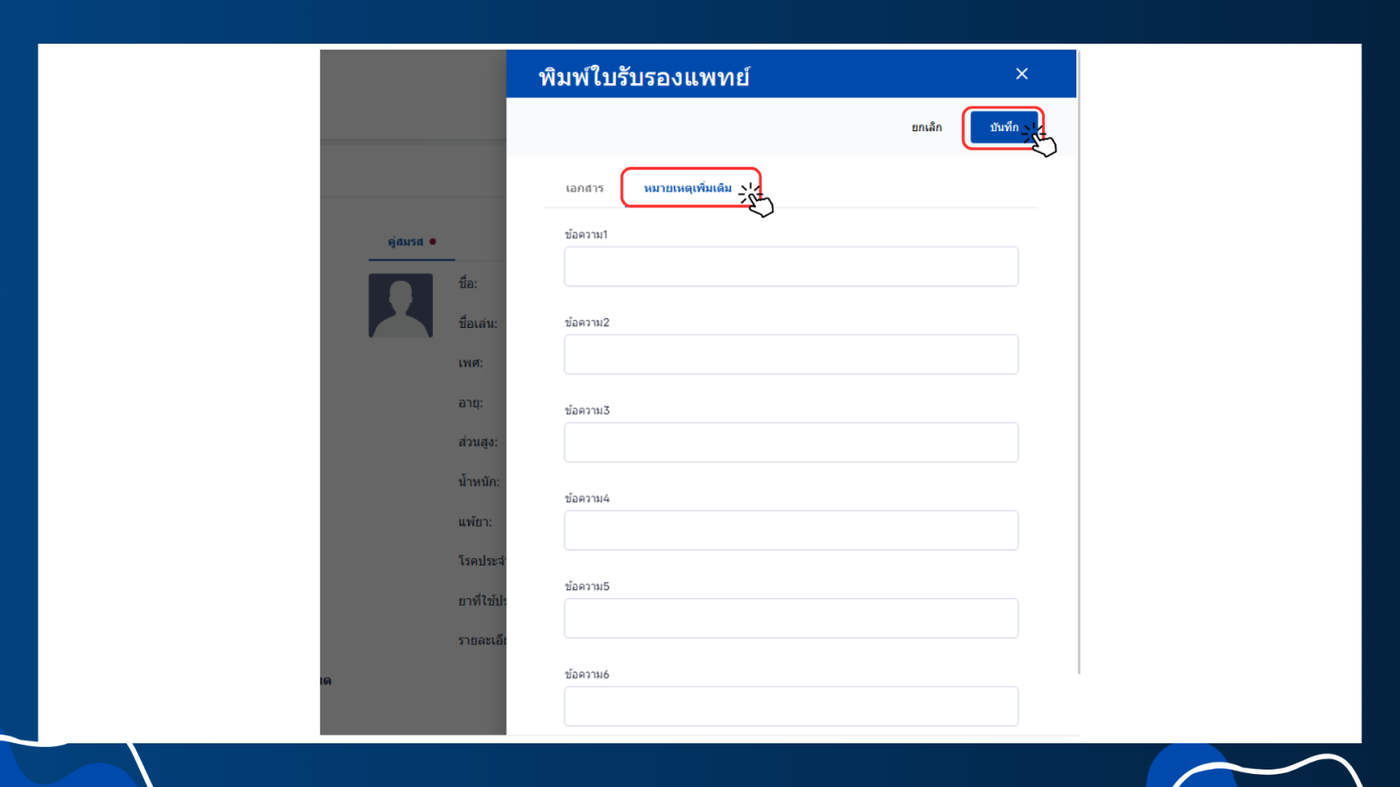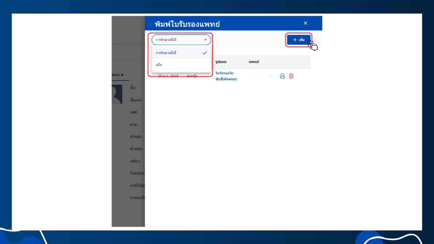 ขั้นตอนการพิมพ์ใบรับรองแพทย์