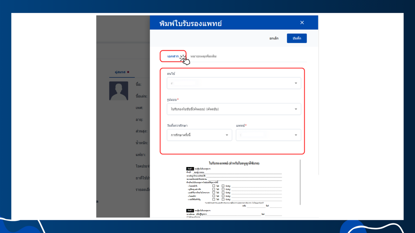 - เลือกใบรับรองแพทย์