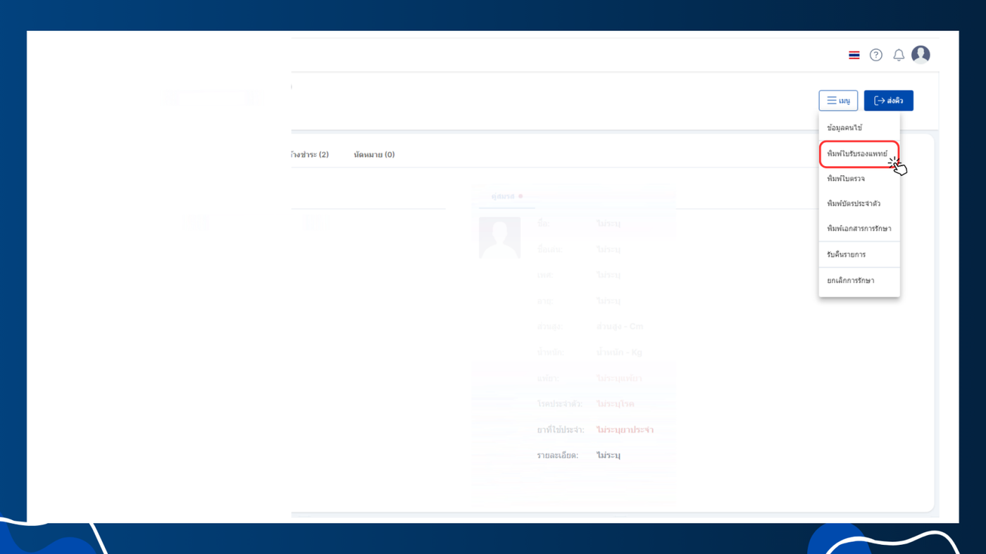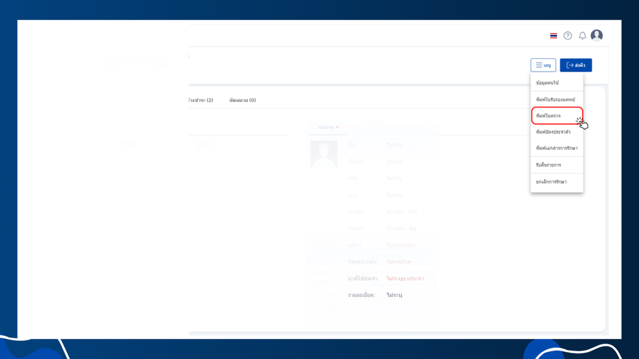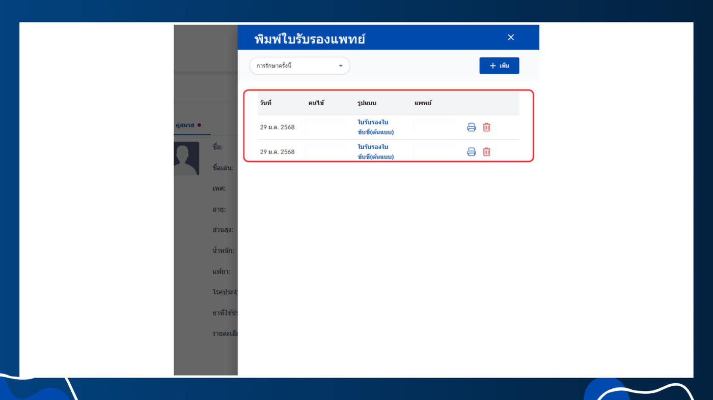 - พิมพ์ใบรับรองแพทย์