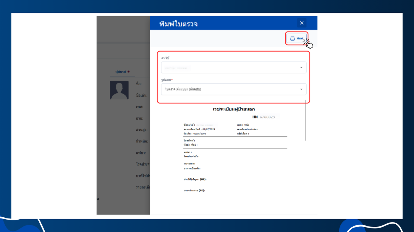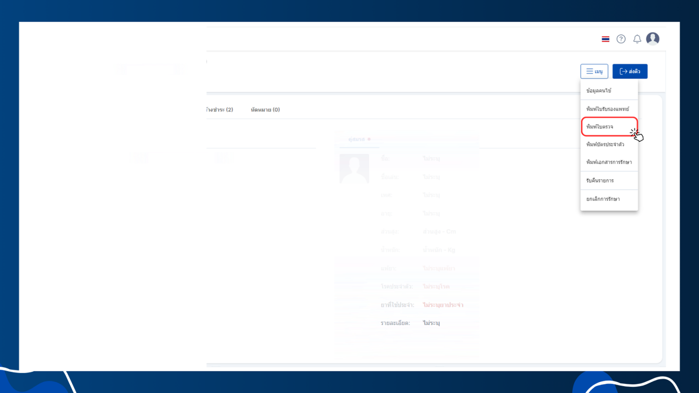 - เลือกพิมพ์ใบตรวจ