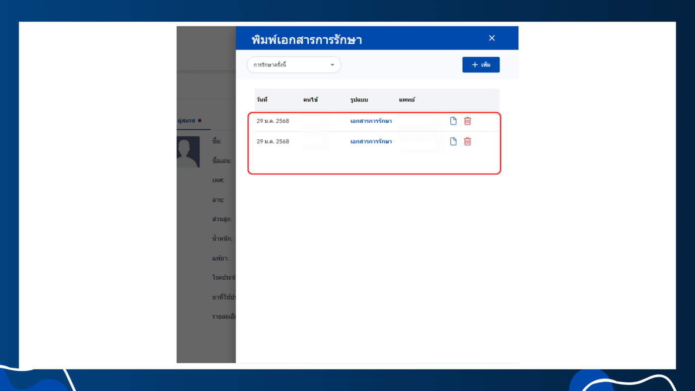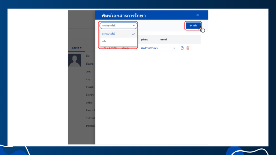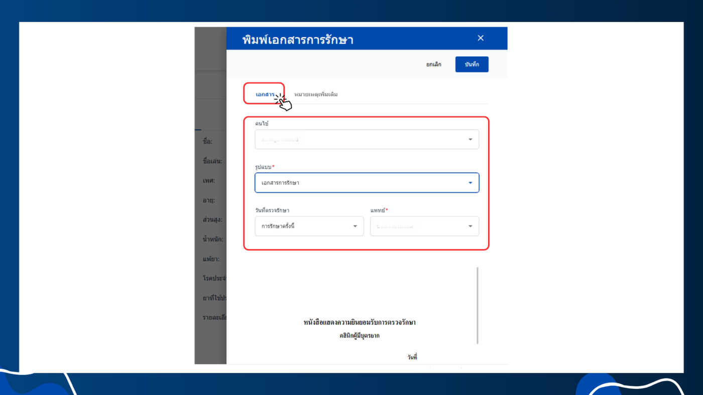 - เลือกพิมพ์เอกสารการรักษา