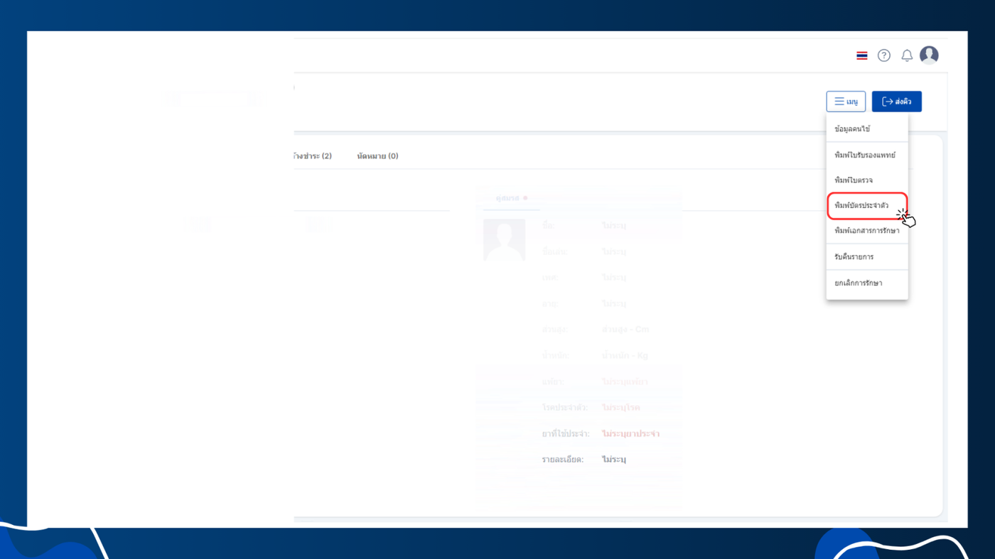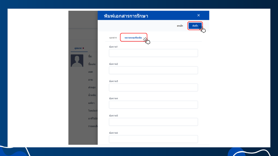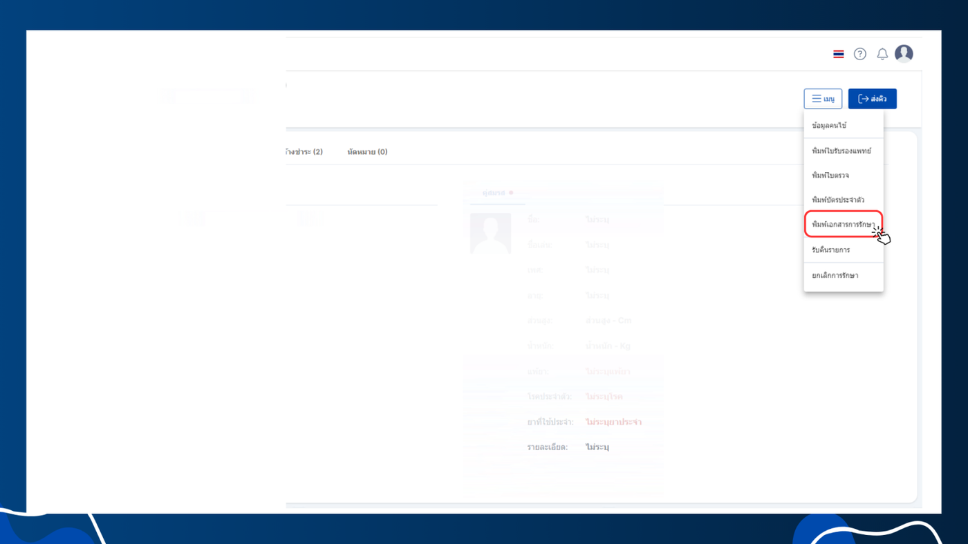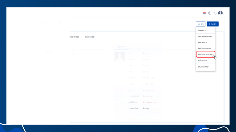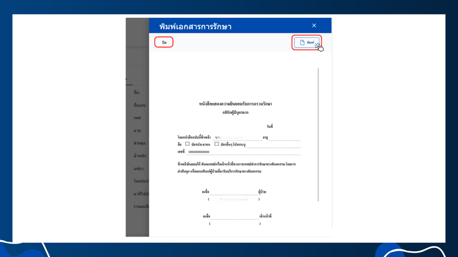 - พิมพ์เอกสารการรักษา