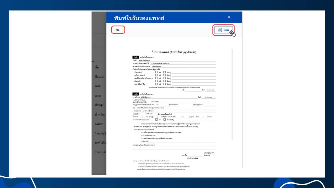 พิมพ์ใบรับรองแพทย์