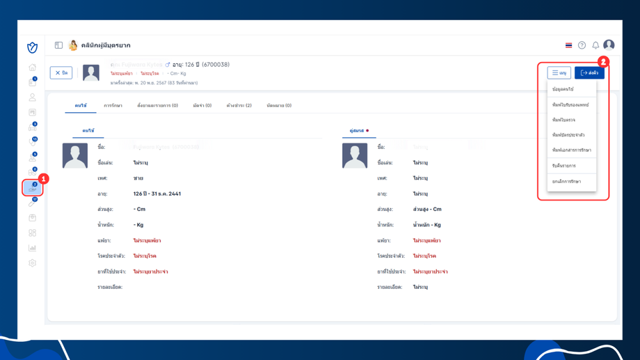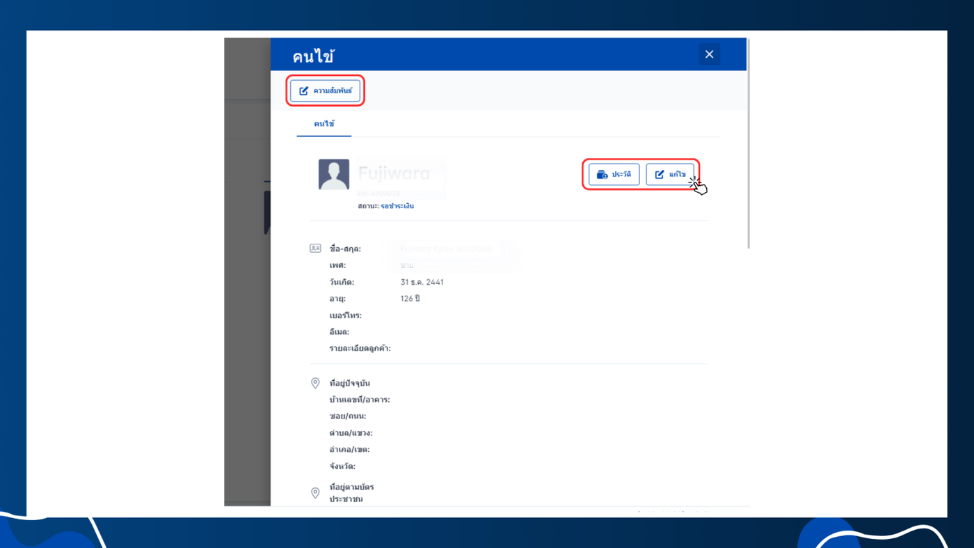 ความสัมพันธ์ของคนไข้ ดูประวัติและแก้ไขข้อมูลคนไข้