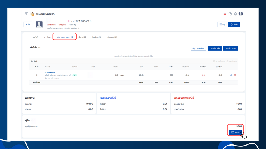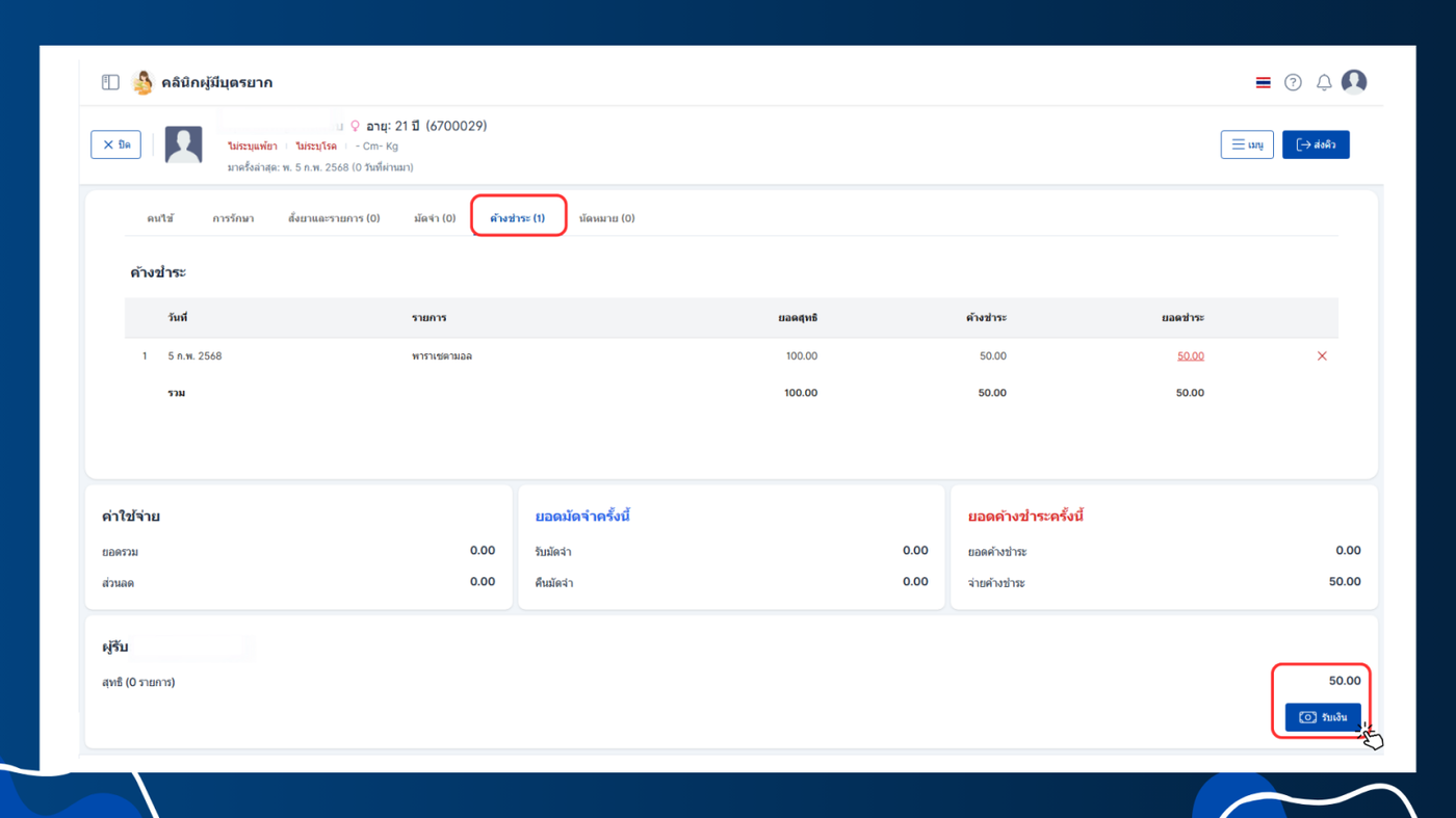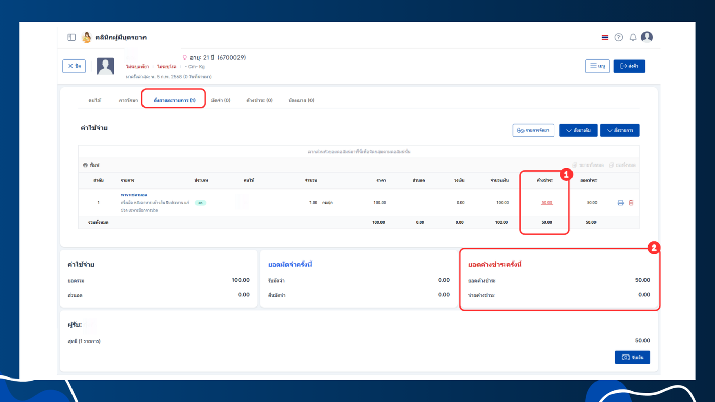 - จะสามารถจ่ายยอดค้างชำระได้เมื่อคนไข้จบการชำระเงินรอบนี้และมาทำการในห้องการเงินรอบใหม่