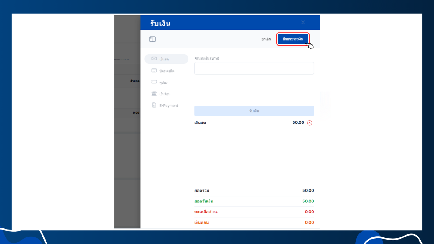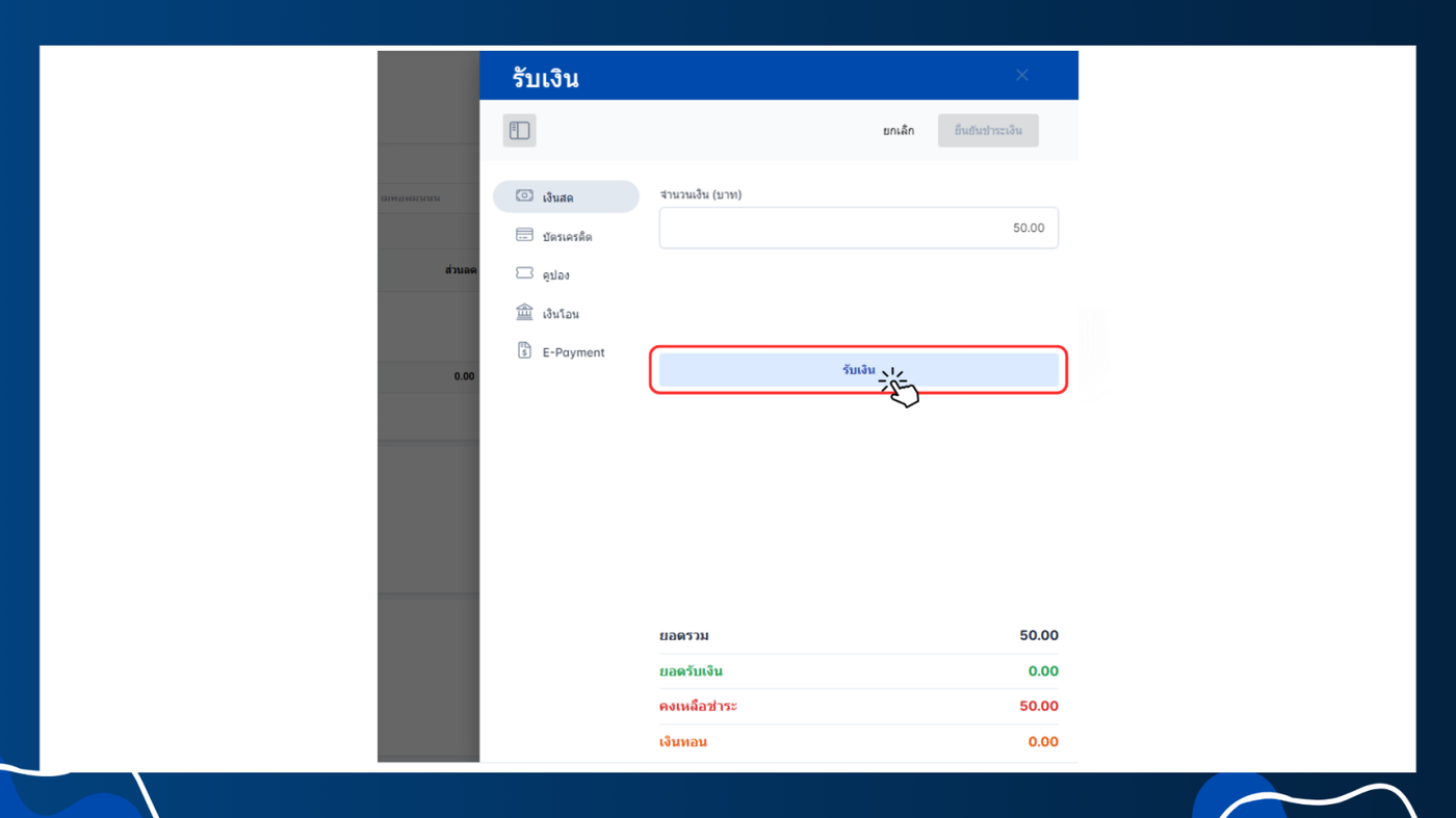 - เลือกช่องทางการชำระเงิน จากนั้นคลิกที่รับเงิน