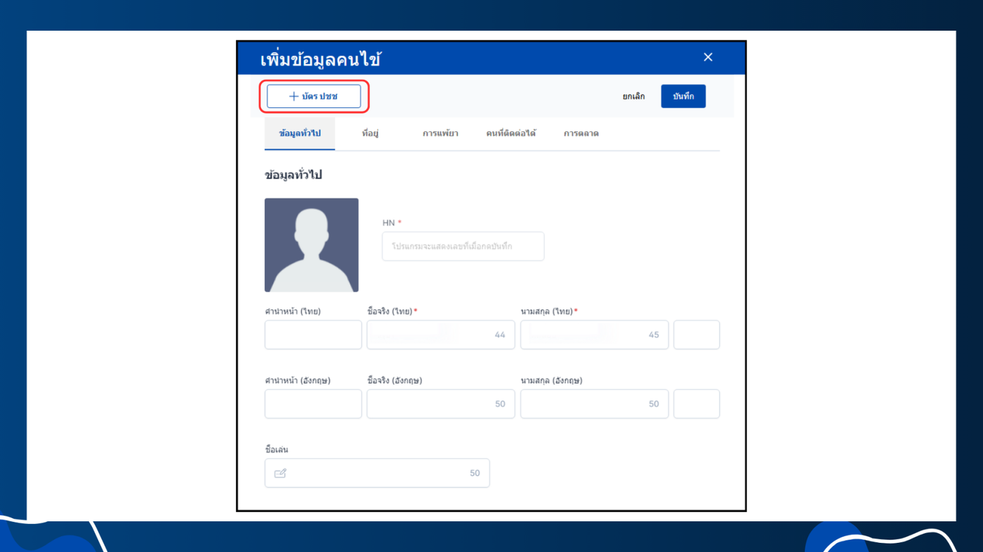 การเพิ่มคนไข้โดยการอ่านบัตร