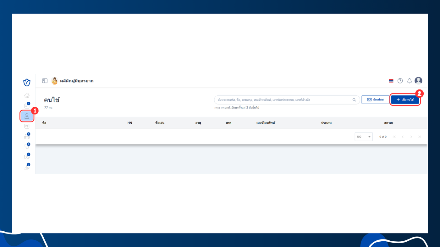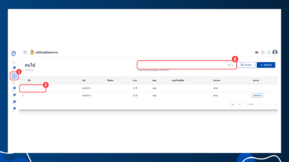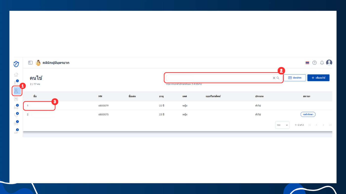 - ค้นหาคนไข้ที่ต้องการเพิ่มข้อมูลการตั้งครรภ์