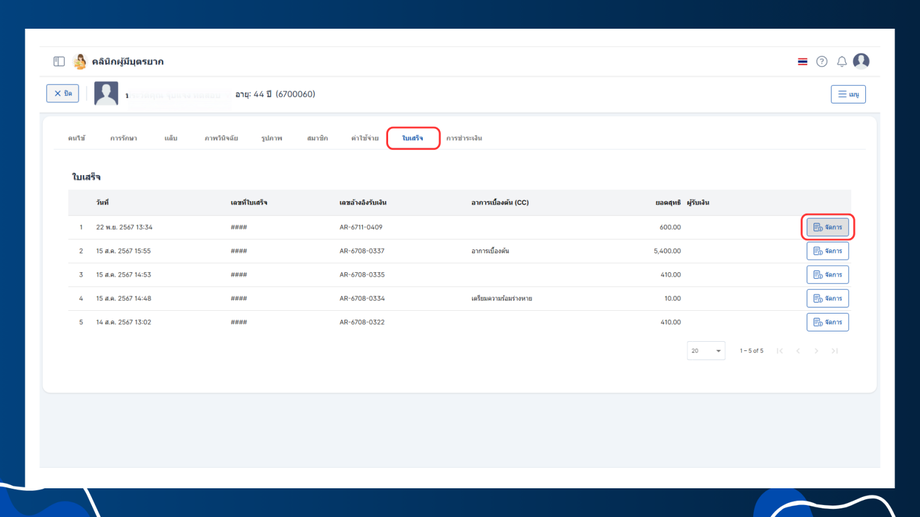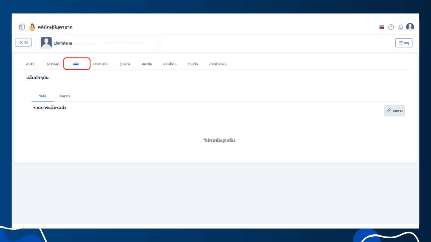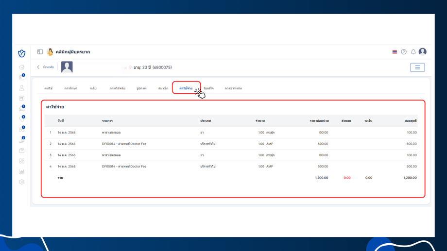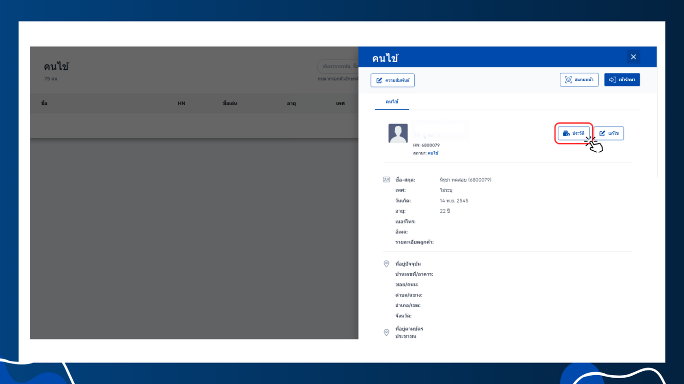 - หลังจากกดบันทึก ระบบจะแสดงหน้าข้อมูลคนไข้