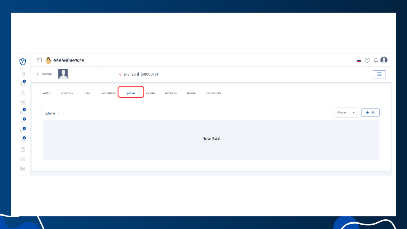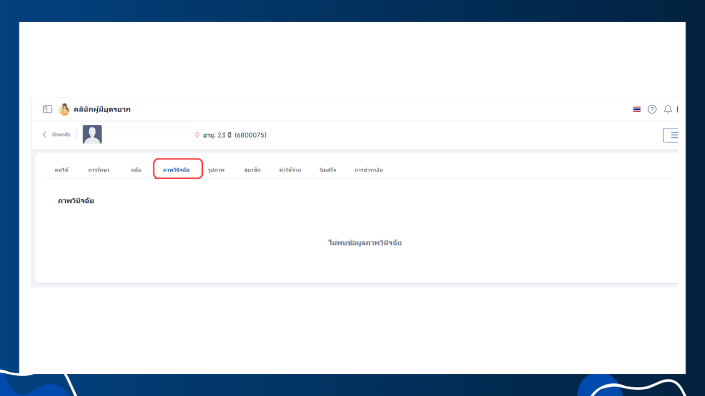 - แท็บรูปภาพ : จะแสดงรูปภาพ เอ็กซเรย์ภาพวินิจฉัย