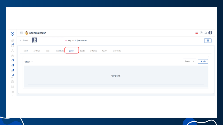 - แท็บภาพวินิจฉัย : ภาพทางการแพทย์