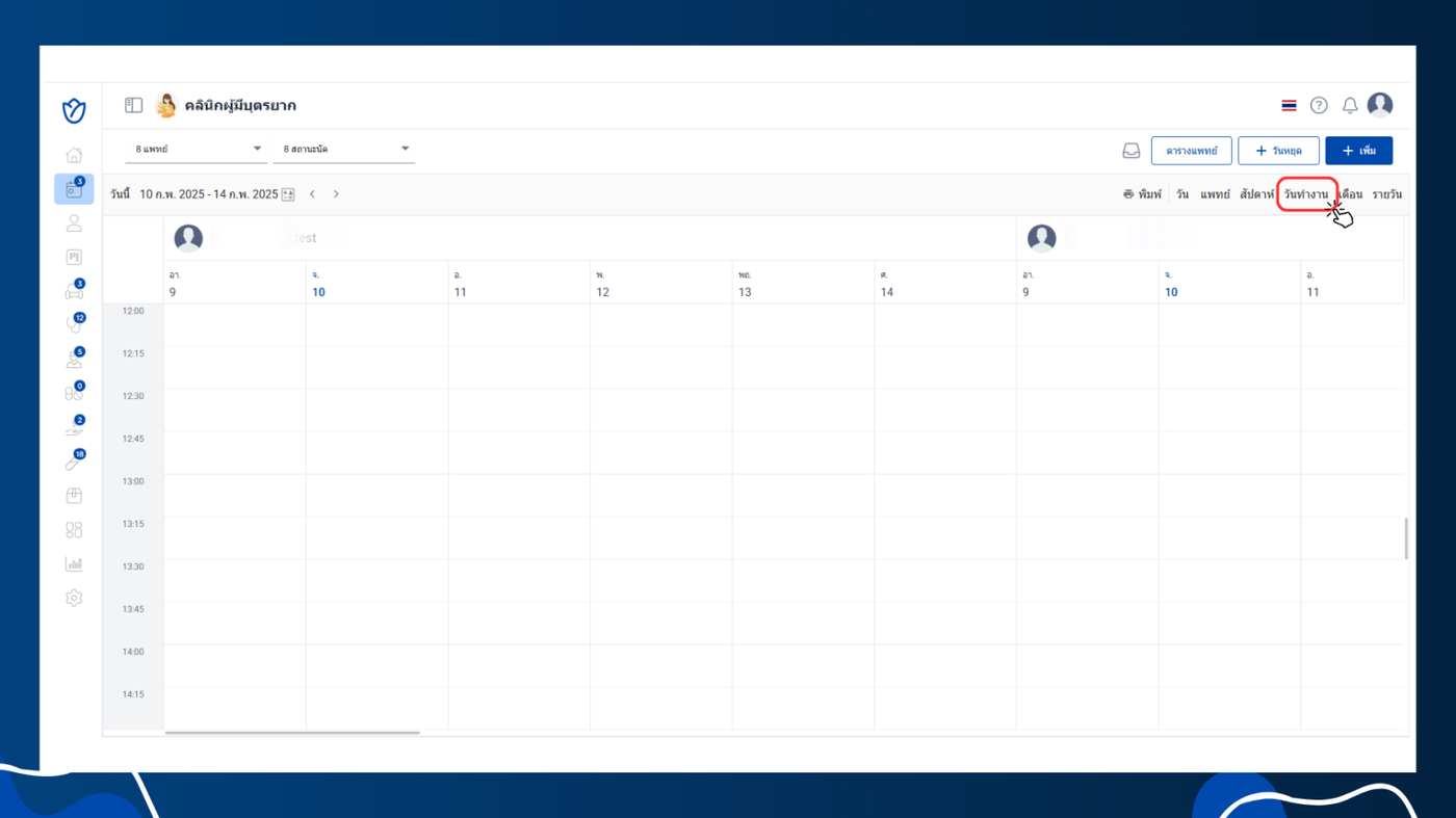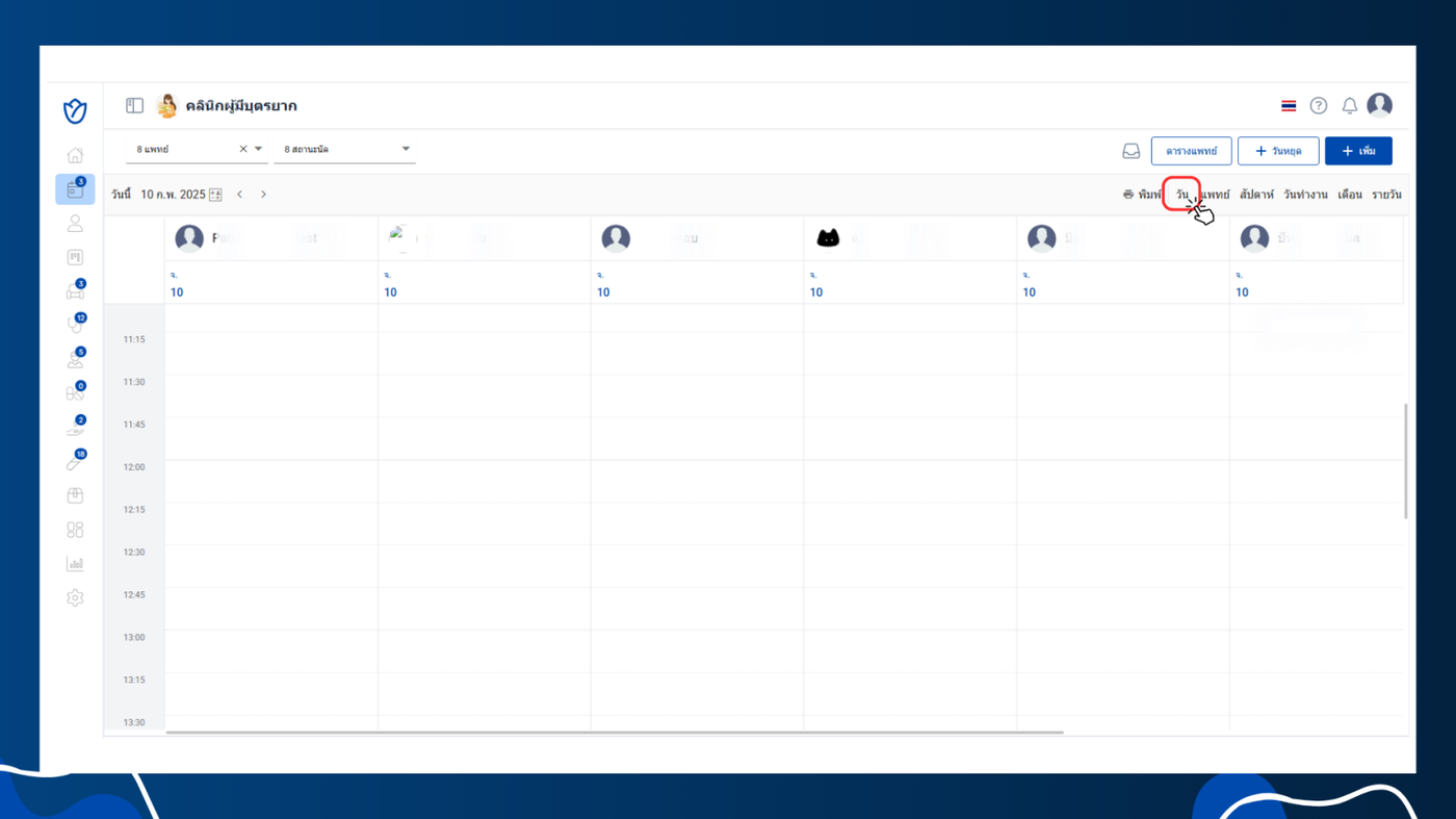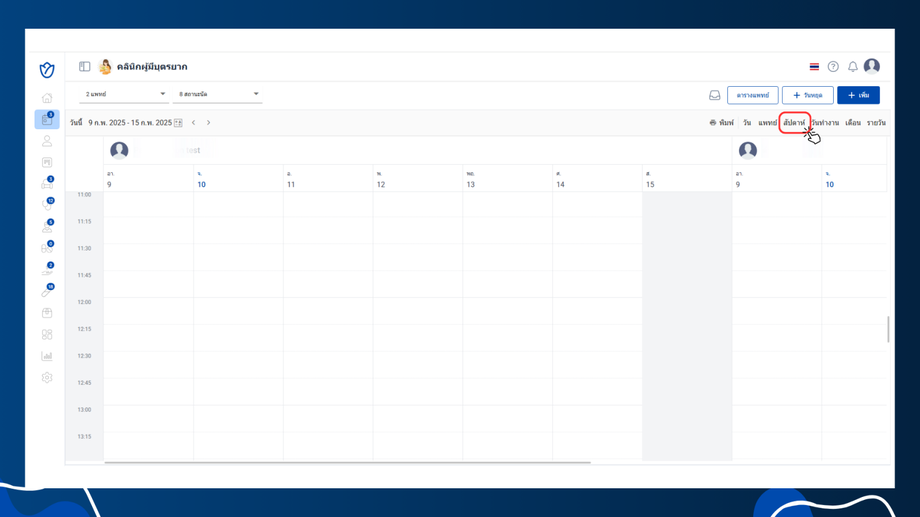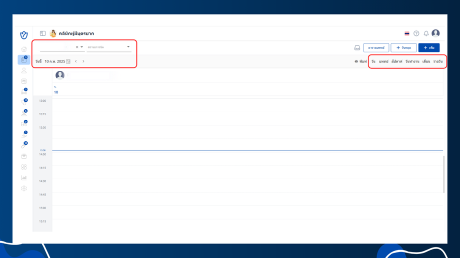 ในหน้าเมนูนัดหมาย ผู้ใช้งานสามารถปรับการแสดงผลของตารางได้ตามความต้องการ