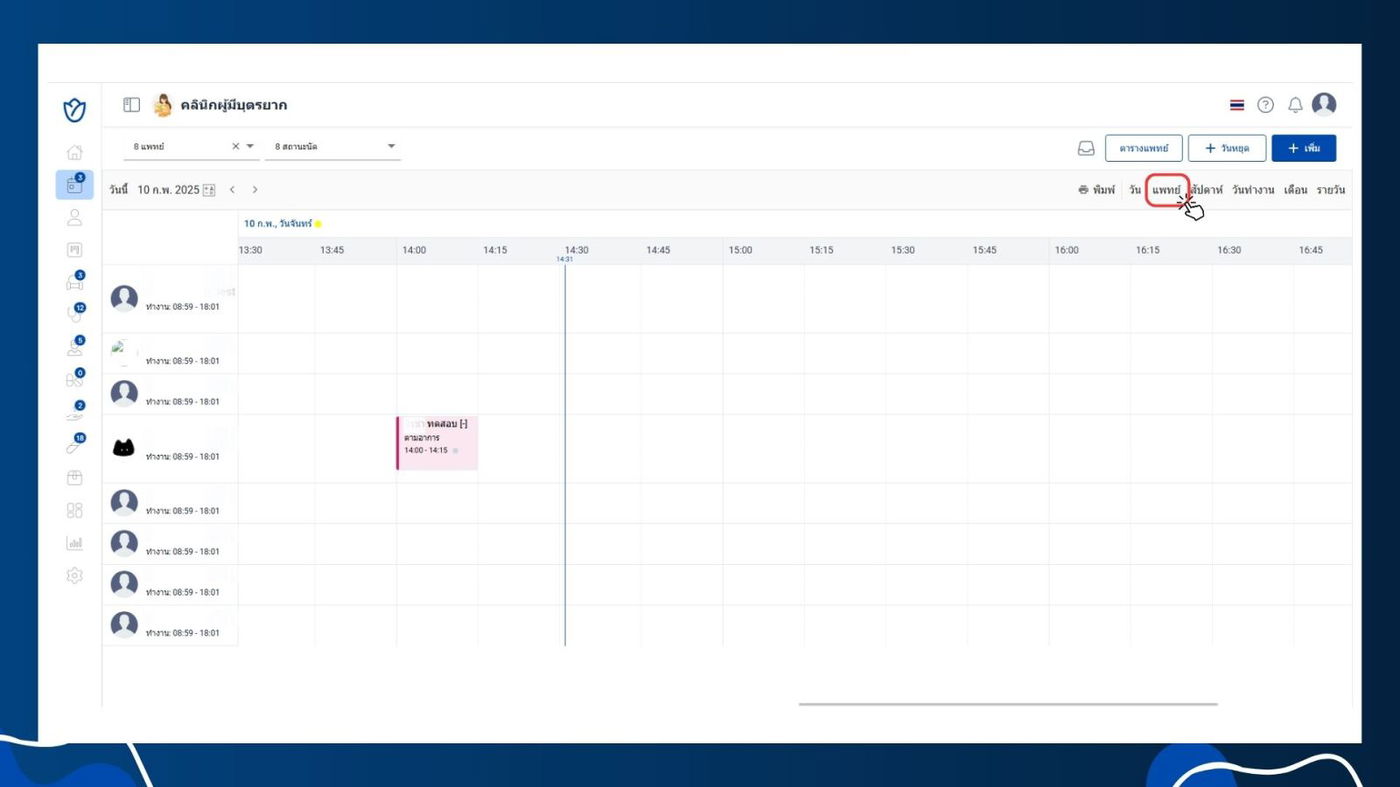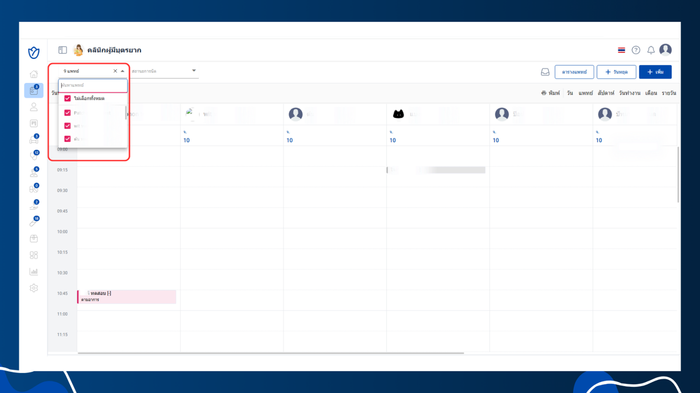 - เลือกแสดงรายการนัดหมายของแพทย์เฉพาะราย