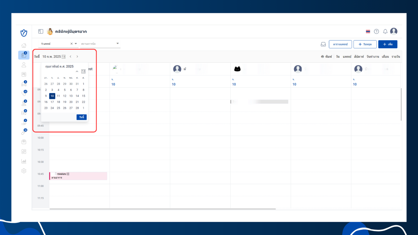 - ผู้ใช้งานสามารถเลือกวันที่เพื่อดูรายการนัดหมายเฉพาะวันนั้น