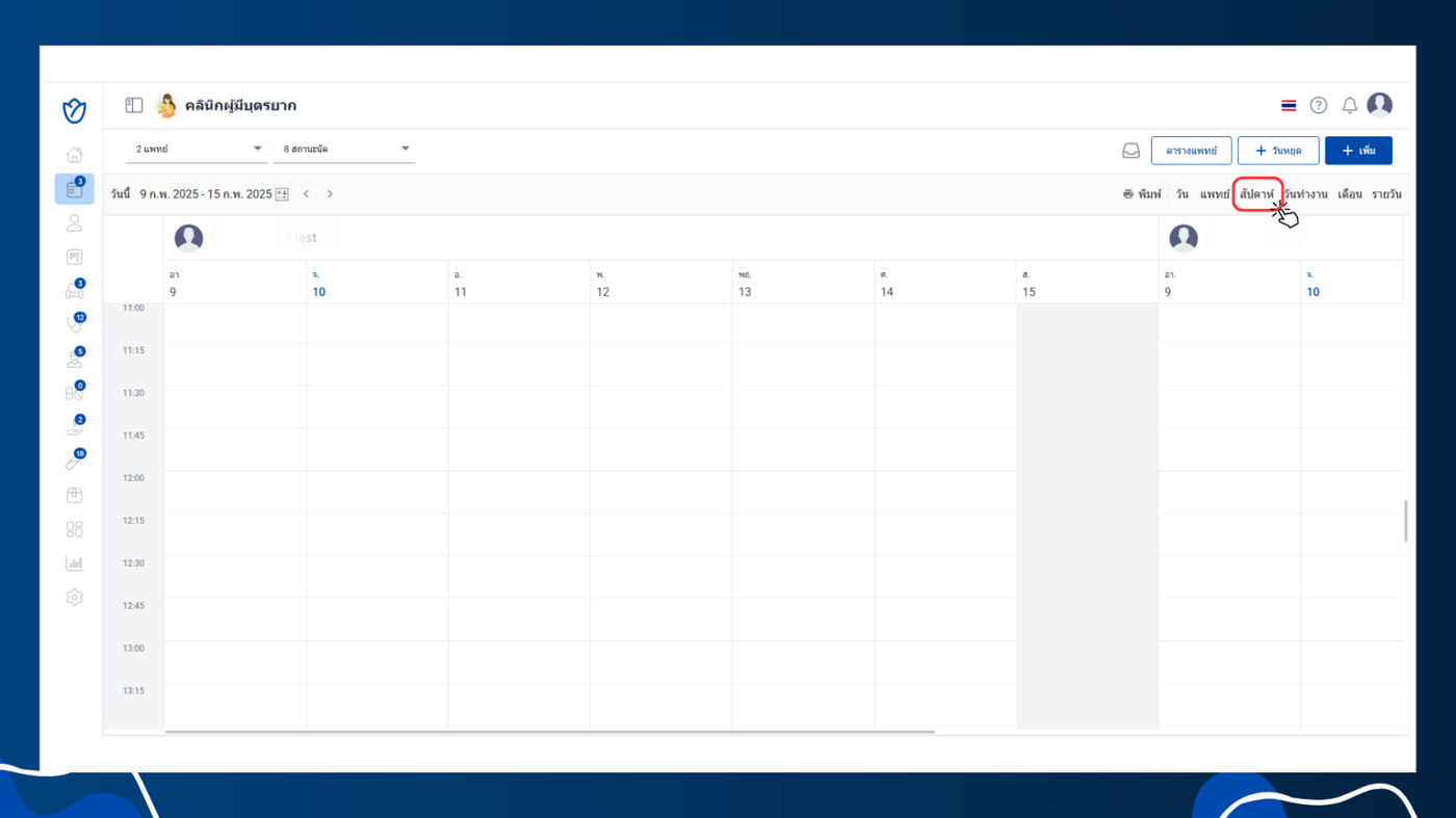 - แสดงชื่อแพทย์และรายการนัดหมายภายในหนึ่งสัปดาห์