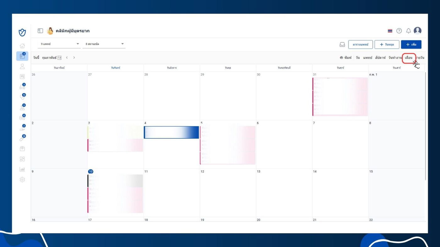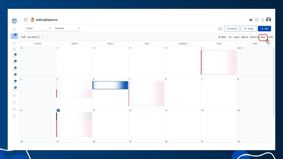 - แสดงรายการนัดหมายในรูปแบบปฏิทินรายเดือน
