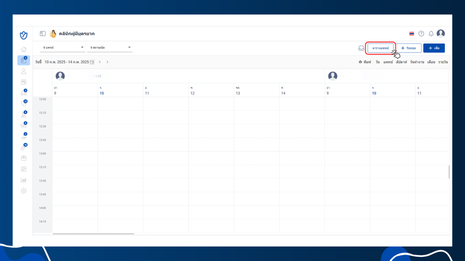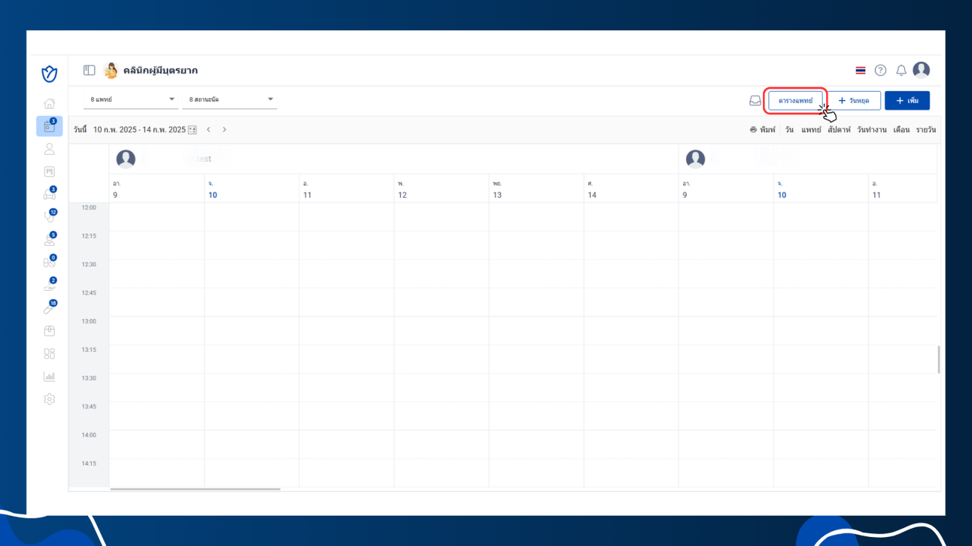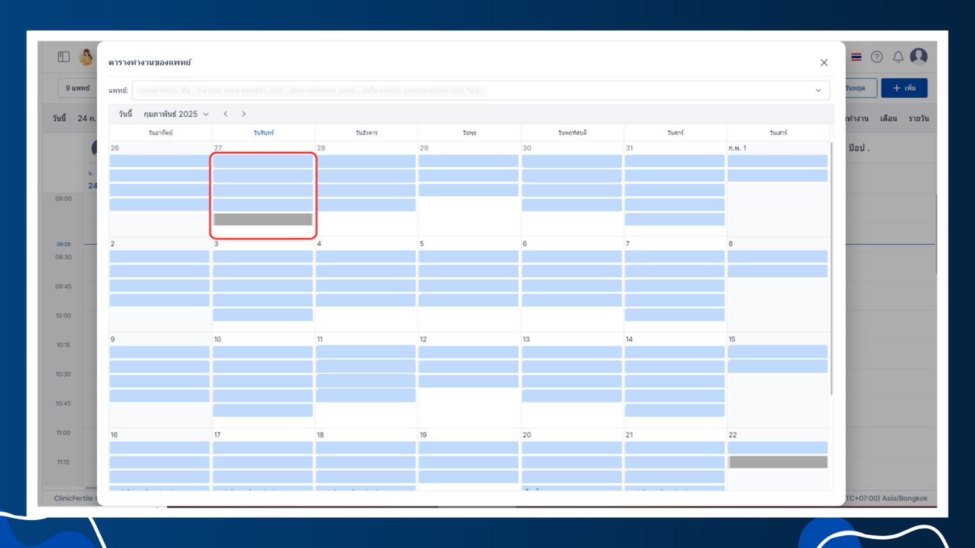 - วันที่แพทย์ทำงานจะเป็นกรอบตารางสีฟ้า