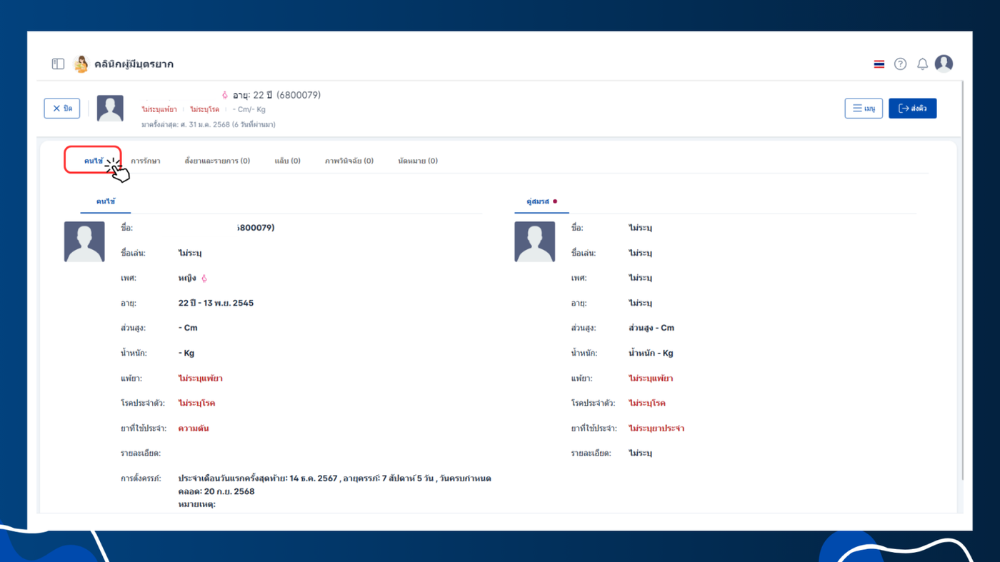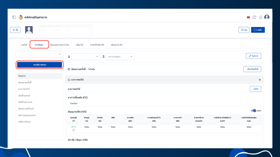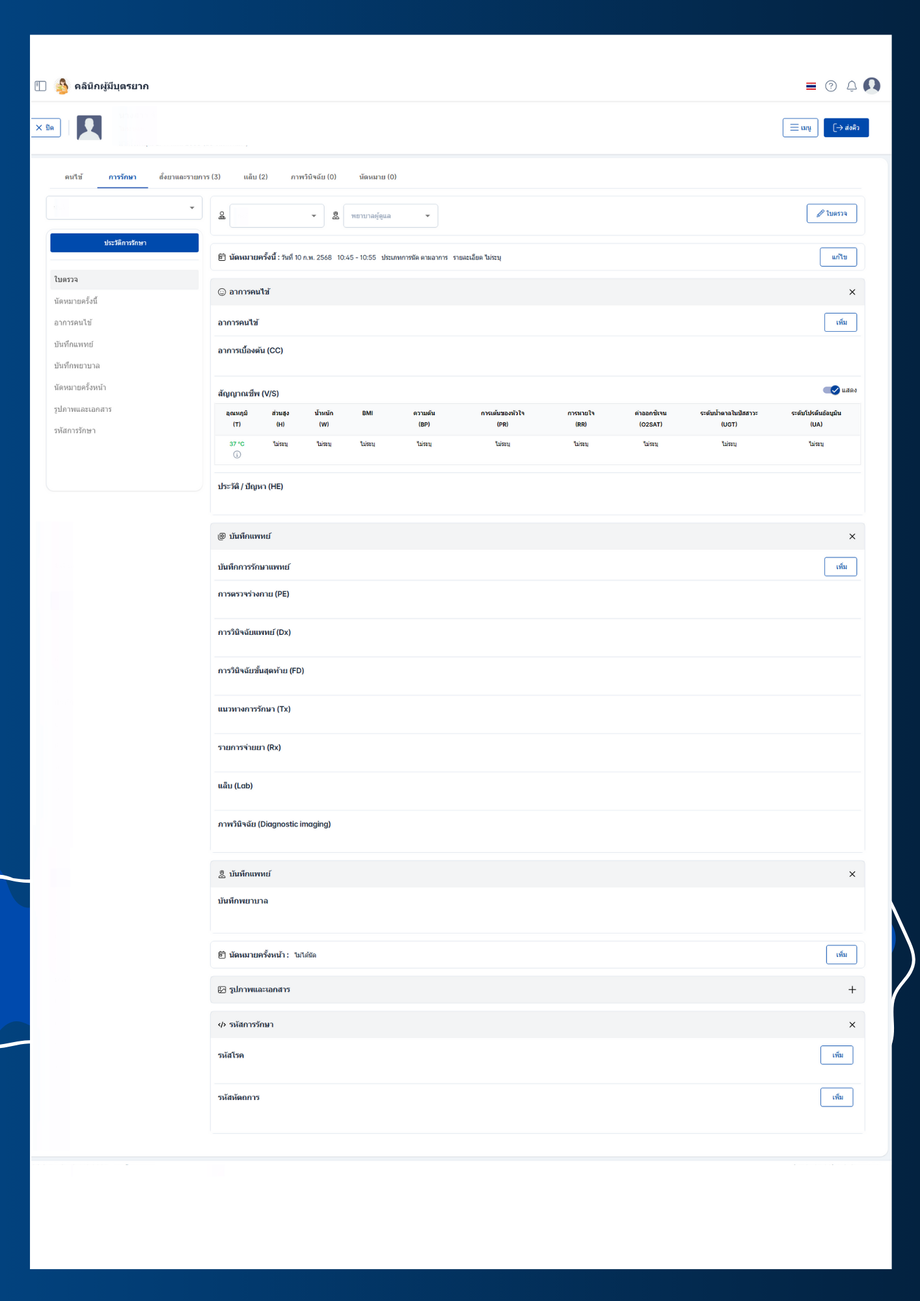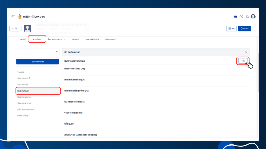 - คนไข้ ชื่อคนไข้จะแสดงขึ้นอัตโนมัติ