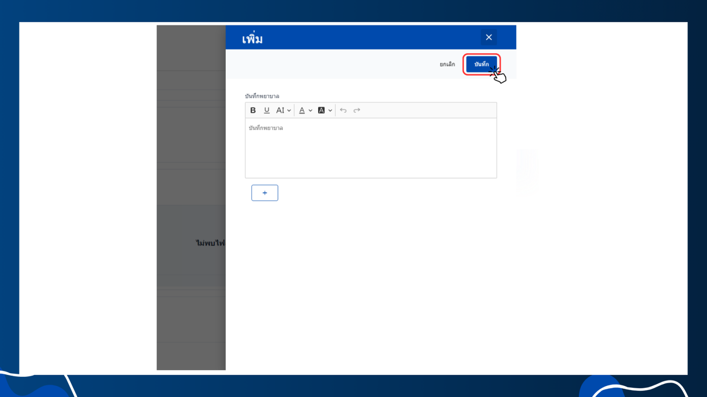 - เมื่อเพิ่มข้อมูลเสร็จแล้วจากนั้น กดบันทึก