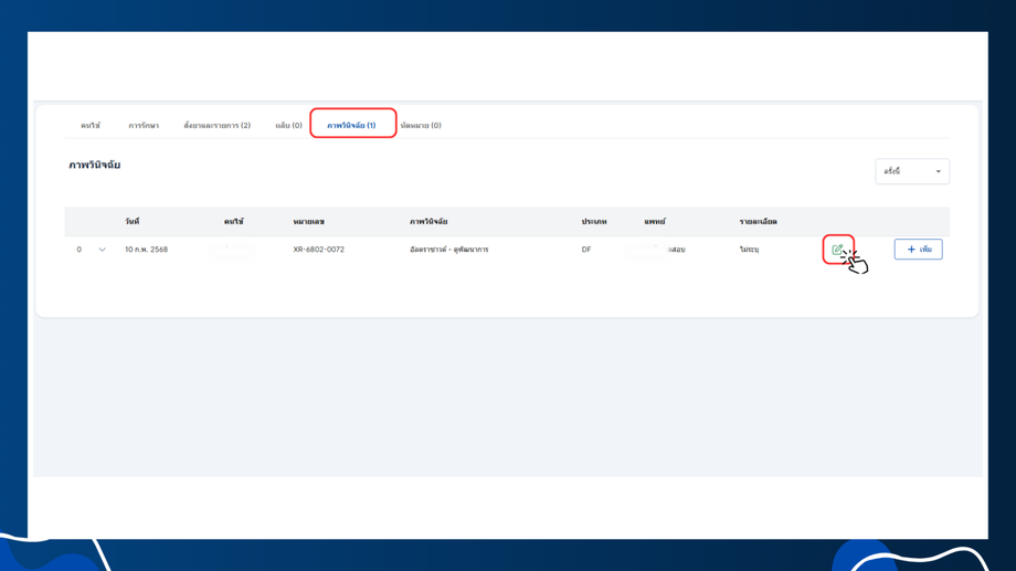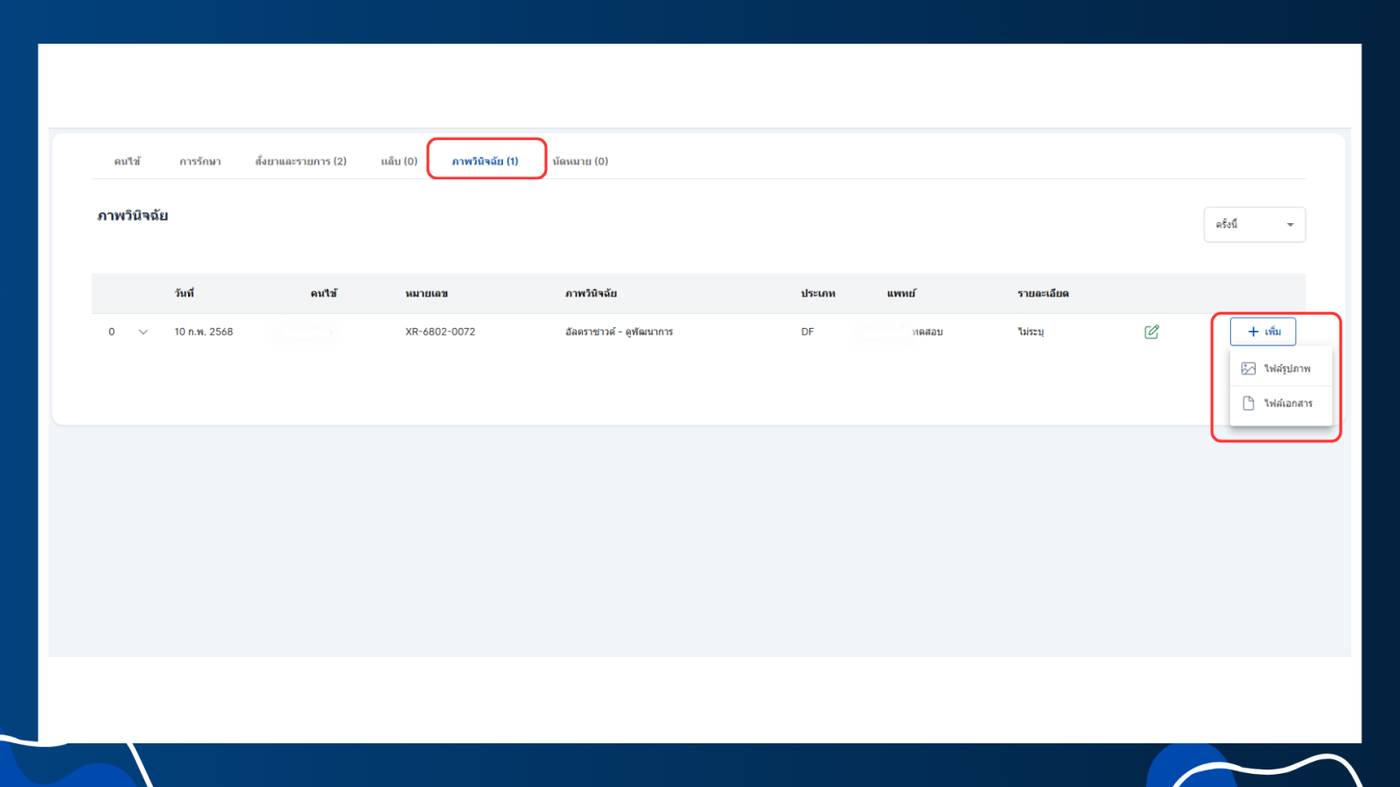 การเพิ่มรูปหรือไฟล์เอ็กซเรย์และอัลตร้าซาวด์