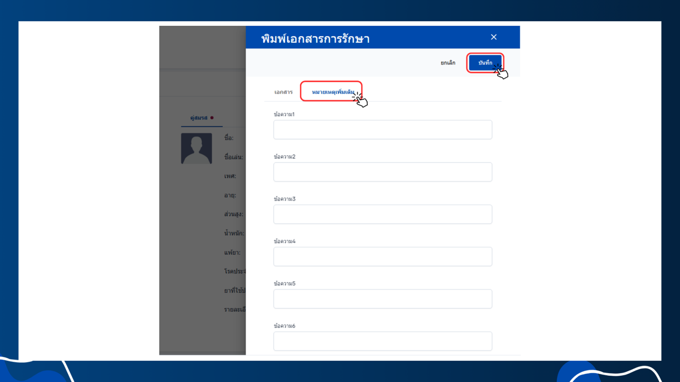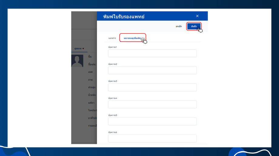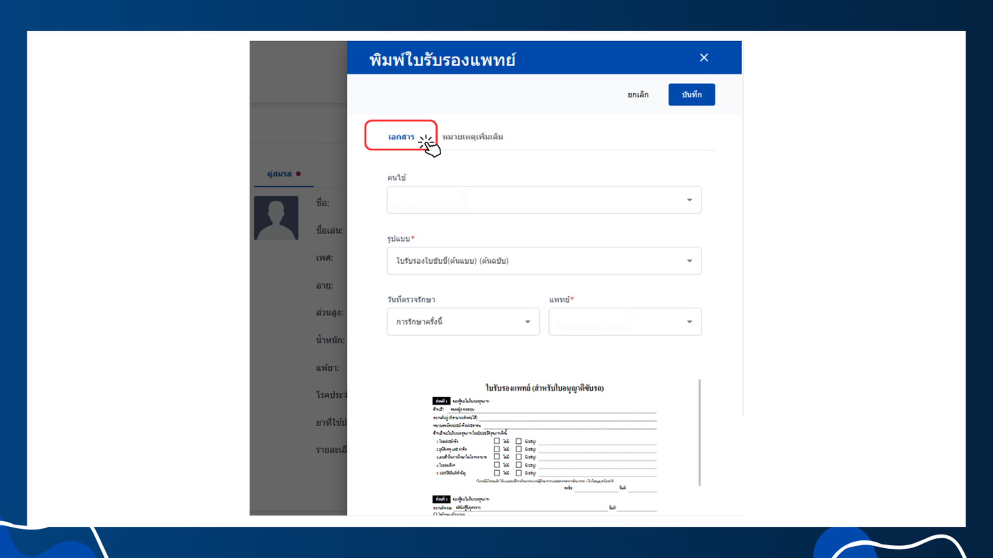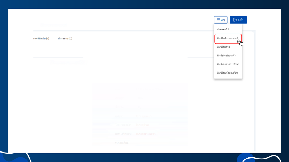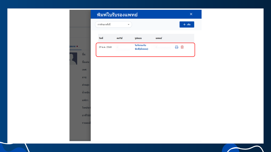 ขั้นตอนการพิมพ์ใบรับรองแพทย์