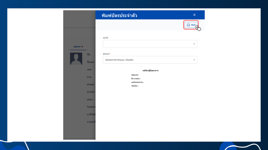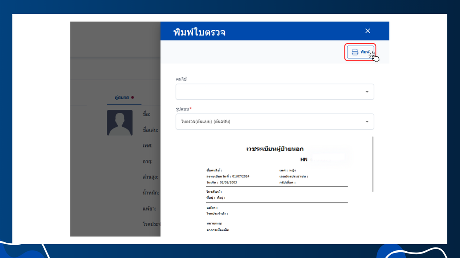 - คลิกปิดจะกลับมาที่หน้าพิมพ์ใบรับรองแพทย์