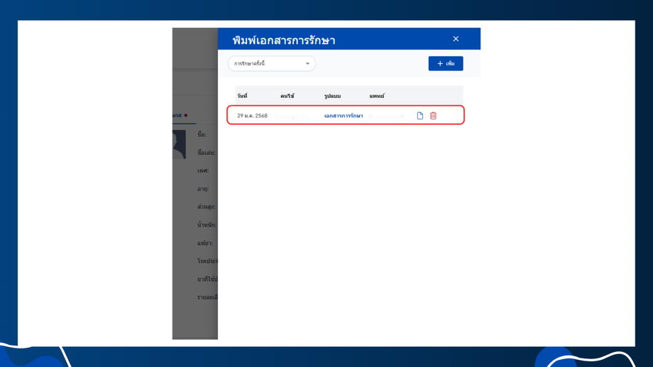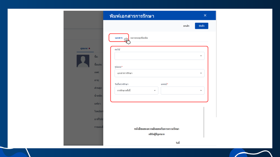 ขั้นตอนการพิมพ์เอกสารรักษา