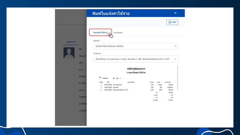 พิมพ์ใบแจ้งค่าใช้จ่าย