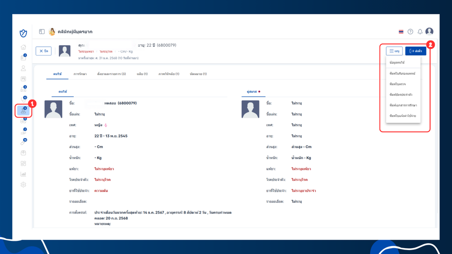 - จะสามารถดูข้อมูลคนไข้และแก้ไขดูประวัติคนไข้ได้ที่ ข้อมูลคนไข้