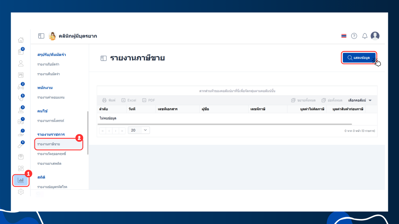 - เลือกหัวข้อรายงานราชการ > รายงานภาษีขาย