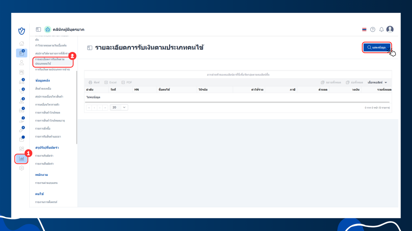 สามารถดูข้อมูลรายละเอียดการรับเงินตามประเภทคนไข้ได้โดยการ