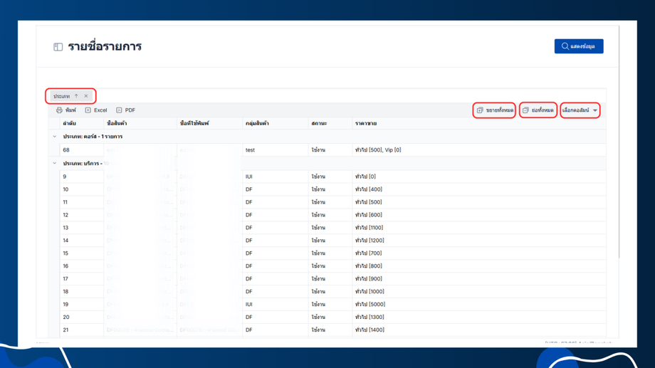 - สามารถขยายทั้งหมด ย่อทั้งหมด หรือเลือกบางคอลัมน์ที่ต้องการดูข้อมูลได้