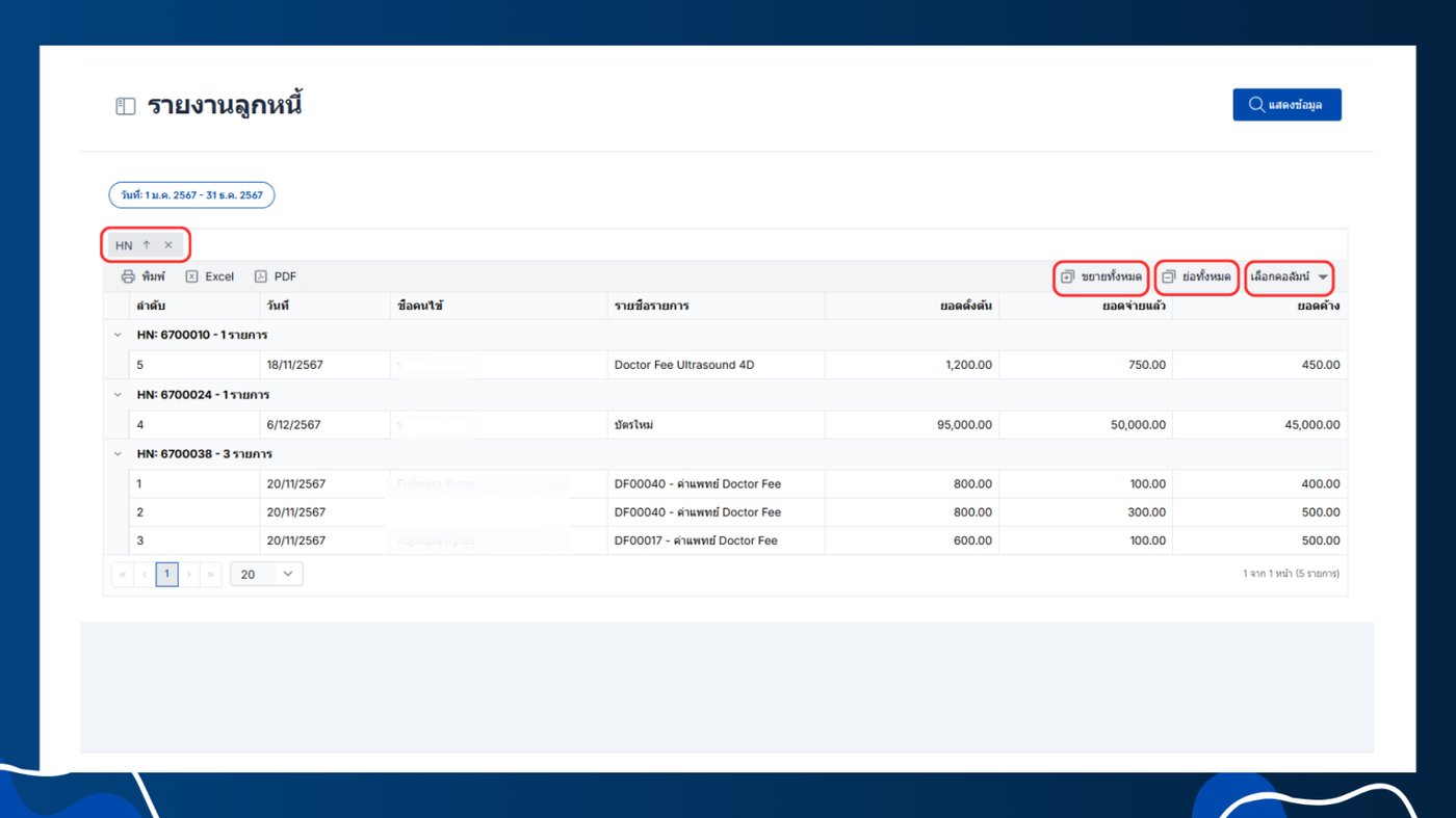 - สามารถขยายทั้งหมด ย่อทั้งหมด หรือเลือกบางคอลัมน์ที่ต้องการดูข้อมูลได้