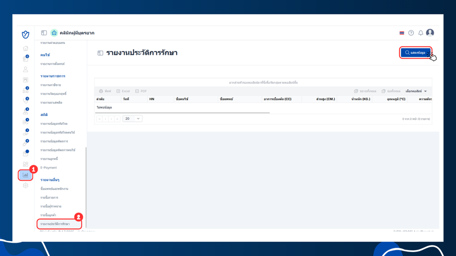 - เลือกหัวข้อรายงานอื่นๆ > รายงานประวัติการรักษา