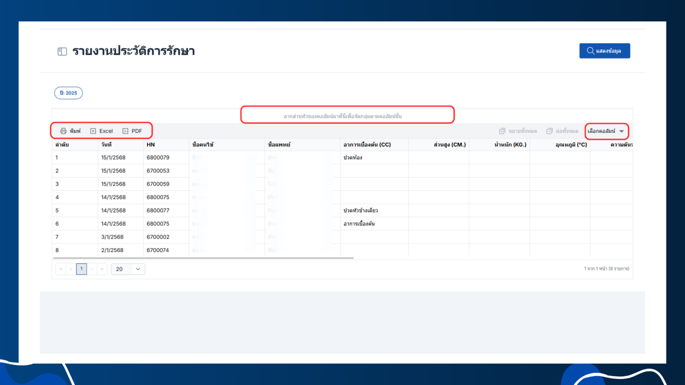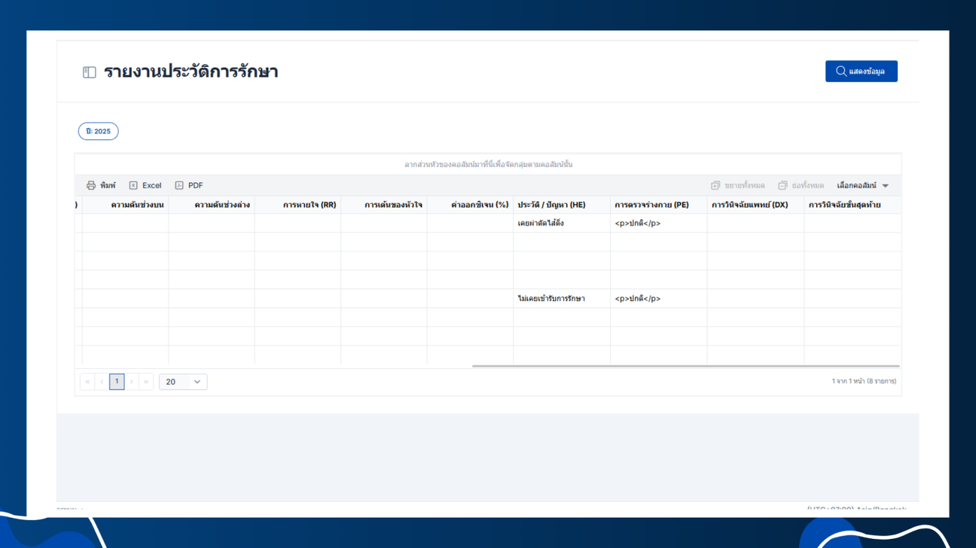 - เลือก ปี สาขา และสามารถเลือกระบุข้อมูลคนไข้ได้