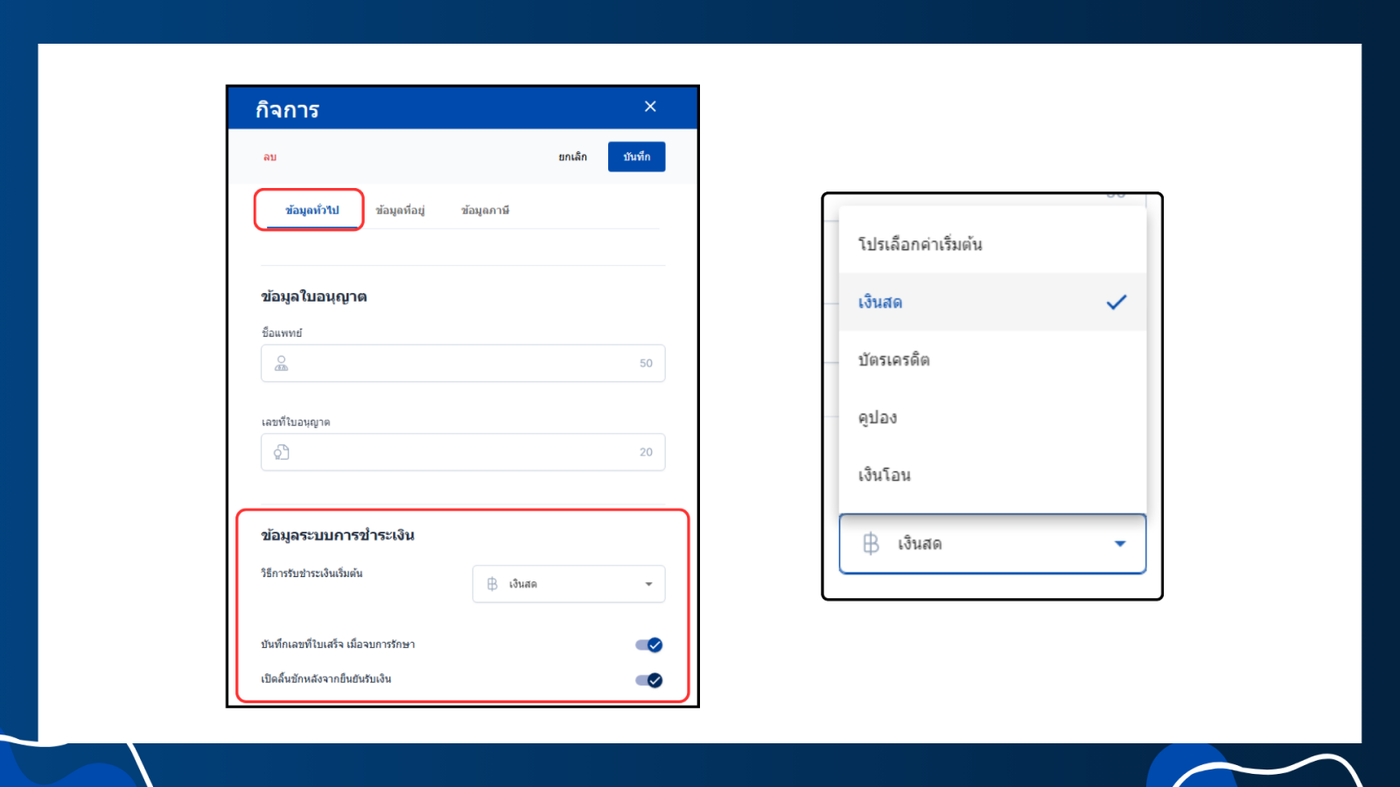 การตั้งค่าข้อมูลระบบชำระเงิน