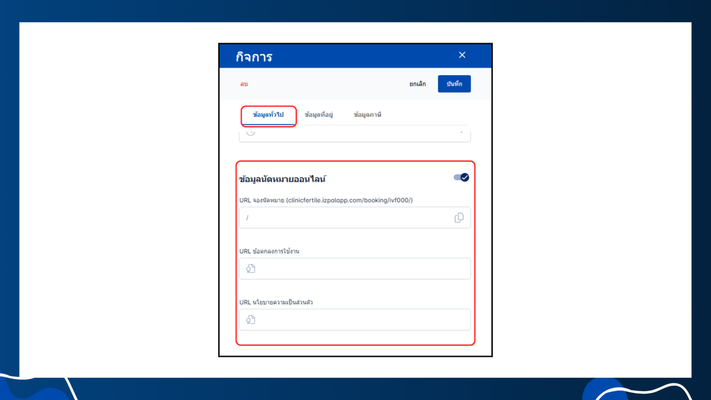 การตั้งค่าข้อมูลการนัดหมายออนไลน์
