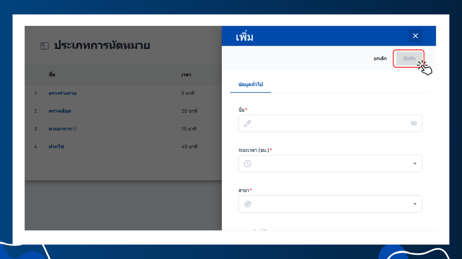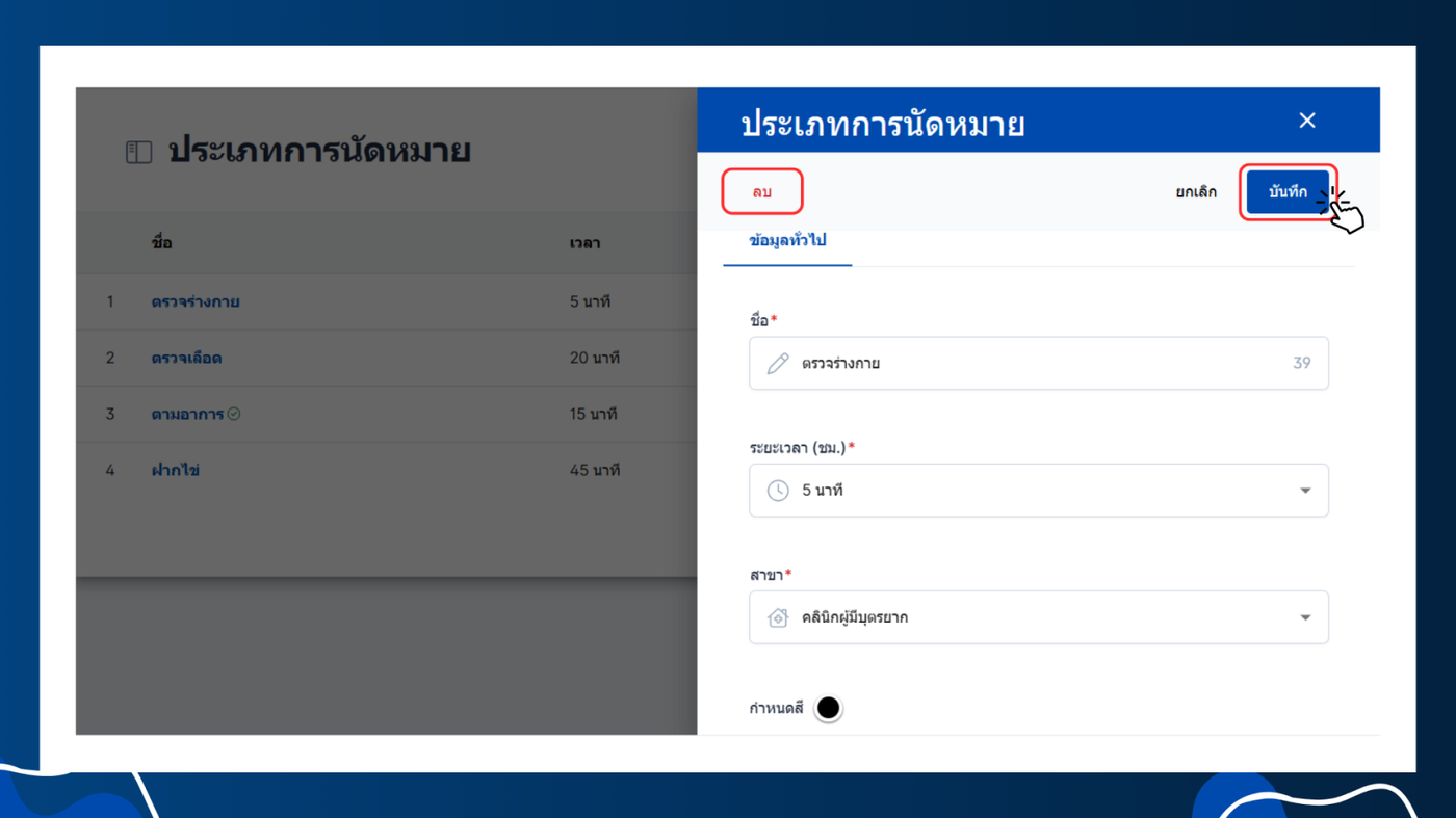 - จากนั้นกดบันทึกระบบจะบันทึกนัดหมาย