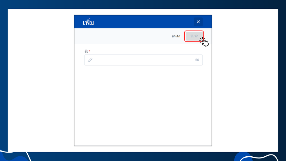 - เมื่อกรอกเสร็จแล้ว กดปุ่มบันทึก ระบบจะทำการบันทึกข้อมูล
