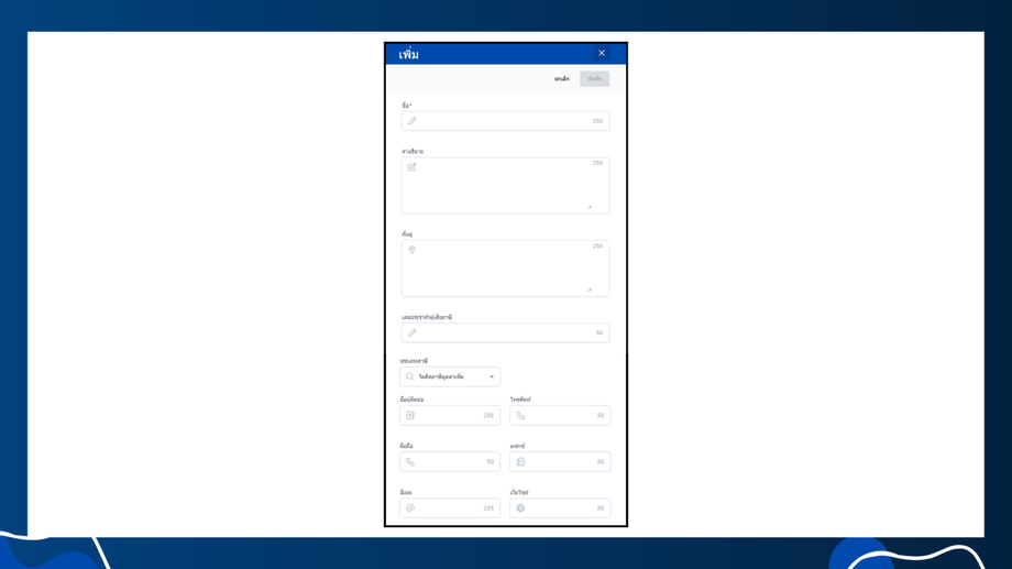 - กรอกข้อมูลรายละเอียดต่างๆให้เรียบร้อย ระบบจะทำการบันทึกข้อมูลผู้จำหน่ายที่คุณเพิ่ม