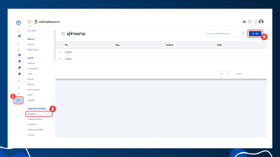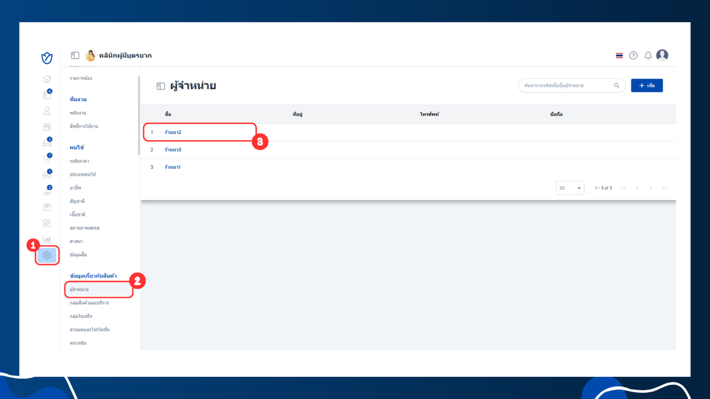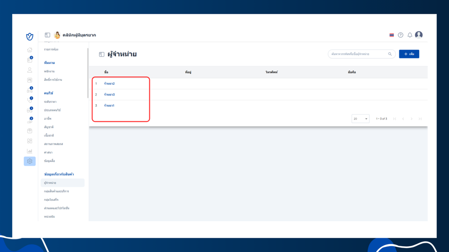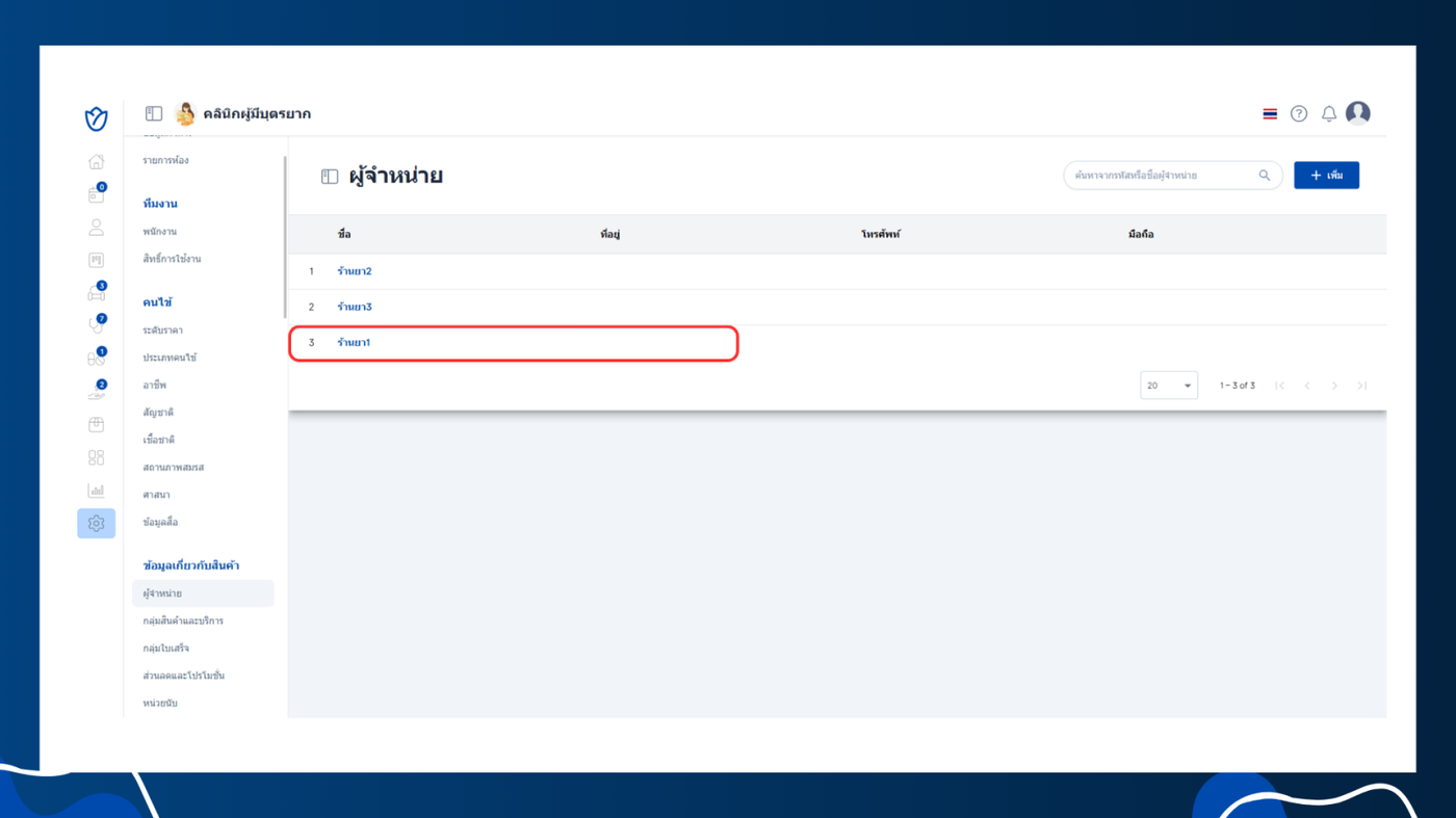 ข้อมูลที่ถูกบันทึกจะปรากฏอยู่ในหน้าผู้จำหน่ายตามที่ตั้งค่าไว้