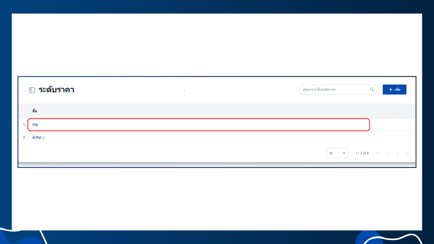 เมื่ออยู่ในหน้าระดับราคา คลิกปุ่ม "เพิ่ม"