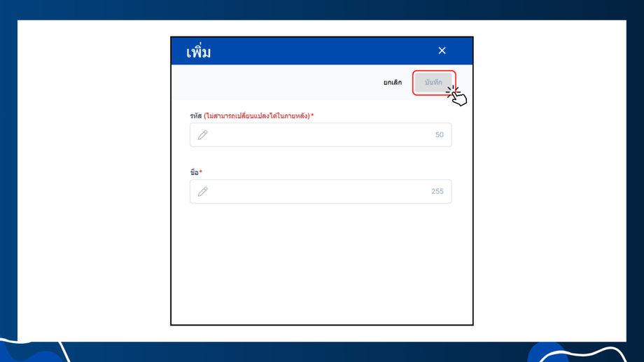 ข้อมูลที่มีสัญลักษณ์ * คือข้อมูลที่จำเป็นต้องกรอกเพื่อบันทึกข้อมูล