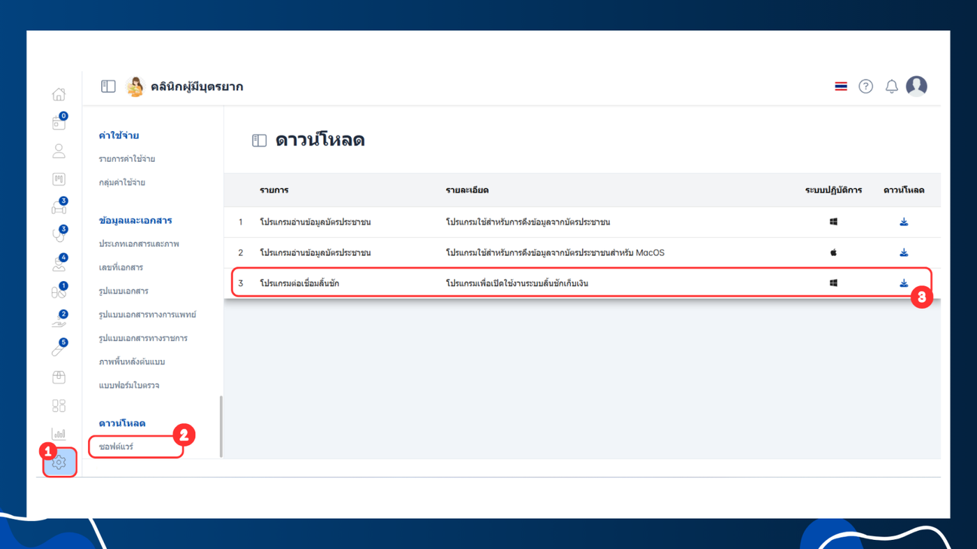 - เลือกรายการที่3 โปรแกรมต่อเชื่อมลิ้นชัก จากนั้นคลิกที่ดาวน์โหลด