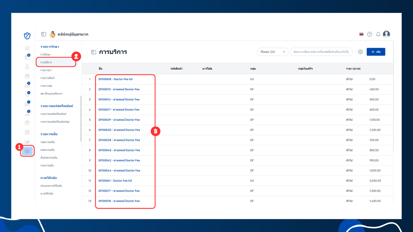 การจัดการรายการบริการเป็นกระบวนการสำคัญที่ช่วยในการบริหารจัดการบริการต่างๆ ภายในระบบ ในคู่มือนี้ เราจะแสดงขั้นตอนการเพิ่ม แก้ไข และปรับปรุงข้อมูลรายการบริการ