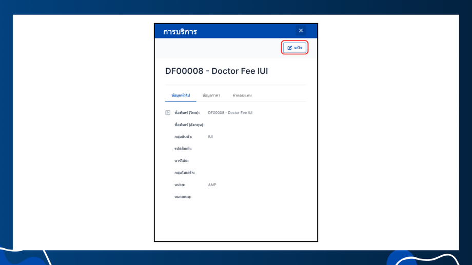 ข้อมูลราคา: แก้ไขราคาการบริการ